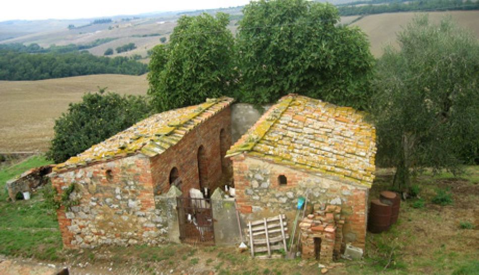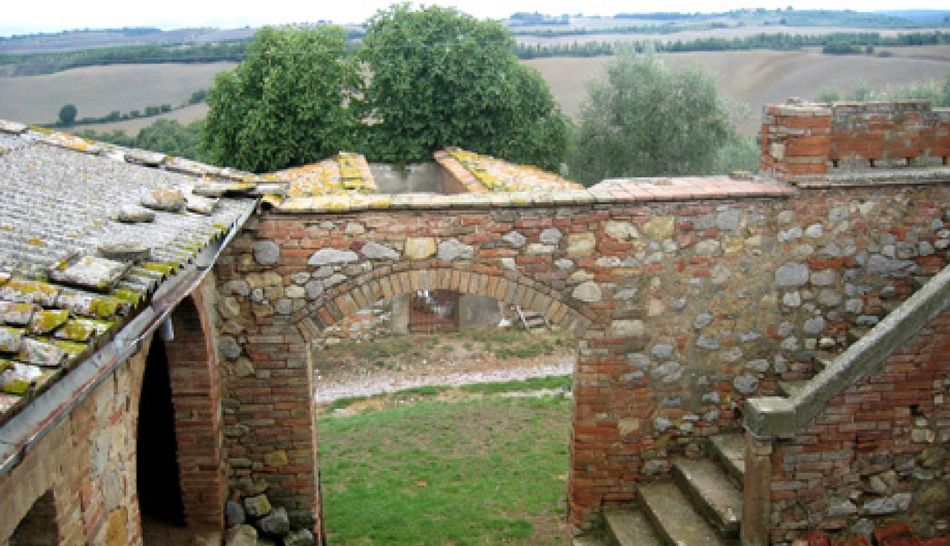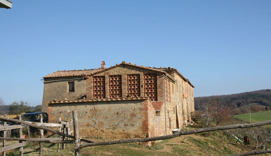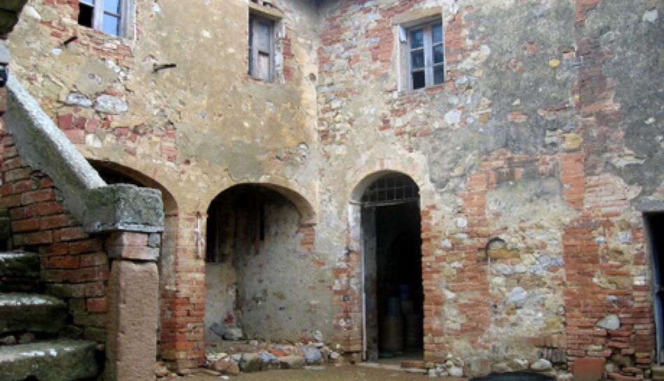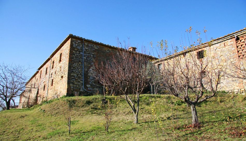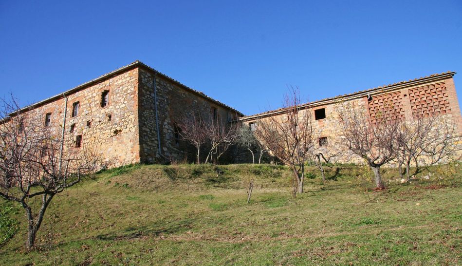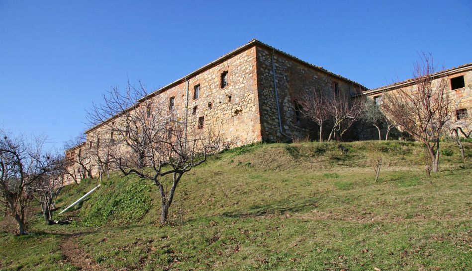 Farmhouse to be restored, surrounded by about 96 hectares of land, for sale in the characteristic Tuscan town of San Giovanni d'Asso, in the municipality of Montalcino, in the province of Siena.