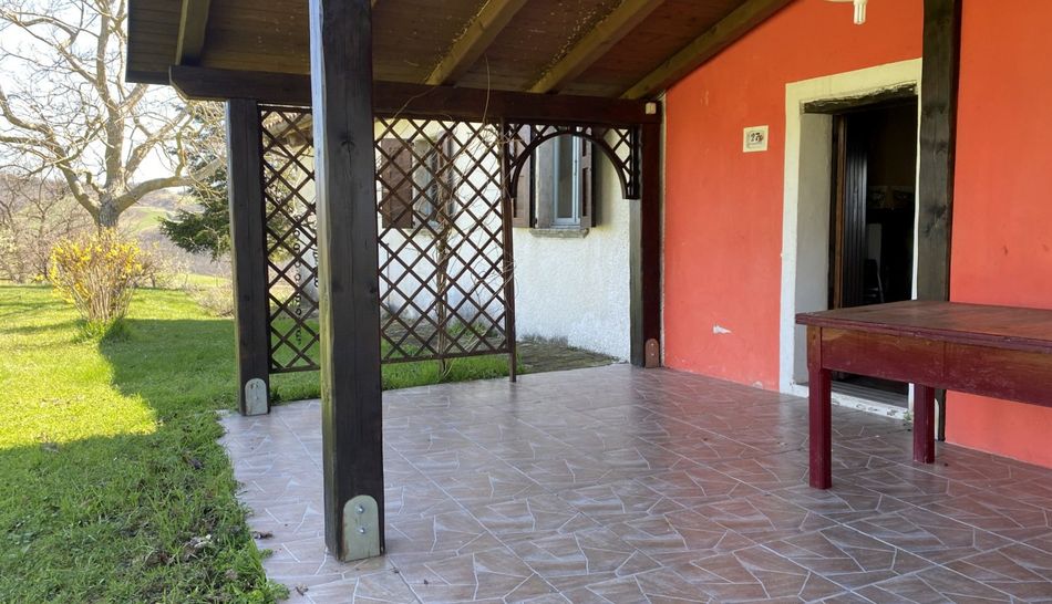 Layout ground floor: entrance via the portico*), sitting room with fireplace, kitchen with fireplace/BBQ, large living room with wood stove, storage room, bathroom, 3 bedrooms and hallway with access to the terrace/balcony where you can enjoy the beautiful view over the hilly landscape and have a view up to the now snow-capped peaks of the Apennines.