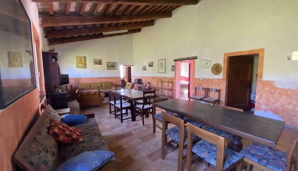 Beautiful authentic farmhouse from the end of 1800, situated in a panoramic, very quiet position 15 minutes away from the medieval town of Cagli. This typical Marchegian Casale has been the home of a family for centuries, where generations have worked and enjoyed the beautiful seasons together in the unspoilt nature of Le Marche. The original cotto floors, beamed ceilings and stone walls (pietra) with beautiful details, give a rustic look. One of the strong points of this house is that there are 2 enormous living rooms. Both floors have an independent entrance.