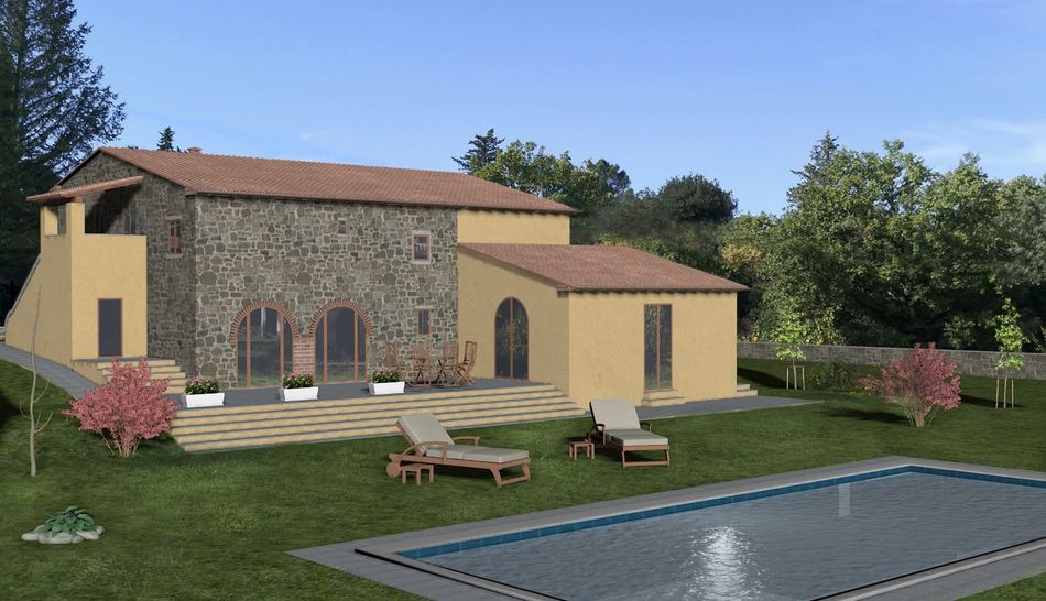 There is a valuable project drawn up by a Tuscan architect, already approved and with all charges paid, for the renovation of the building to create a beautiful stone farmhouse of 281 sqm with swimming pool.