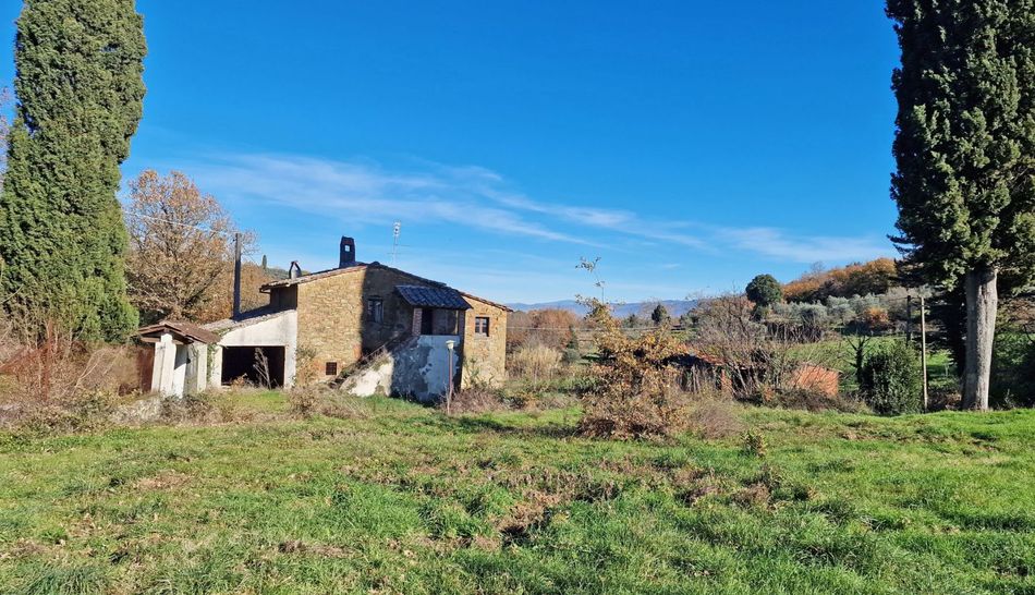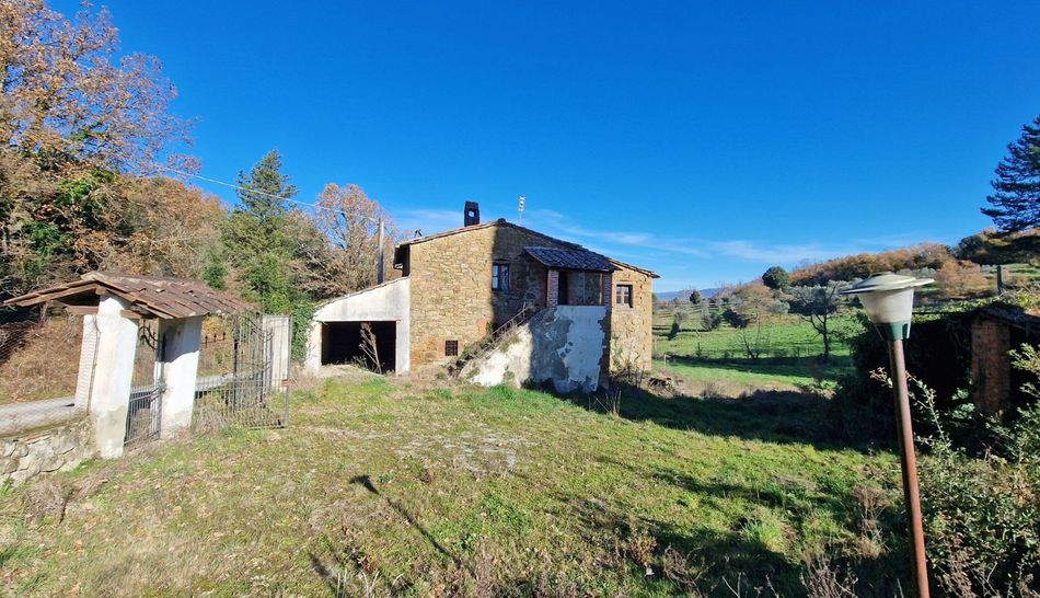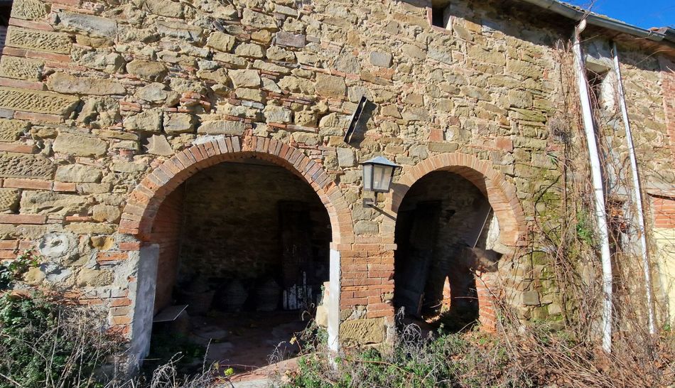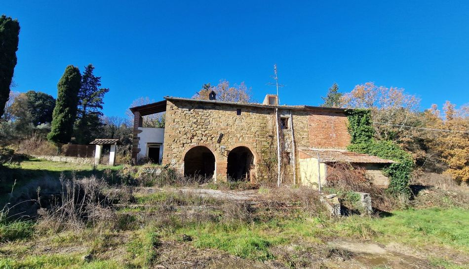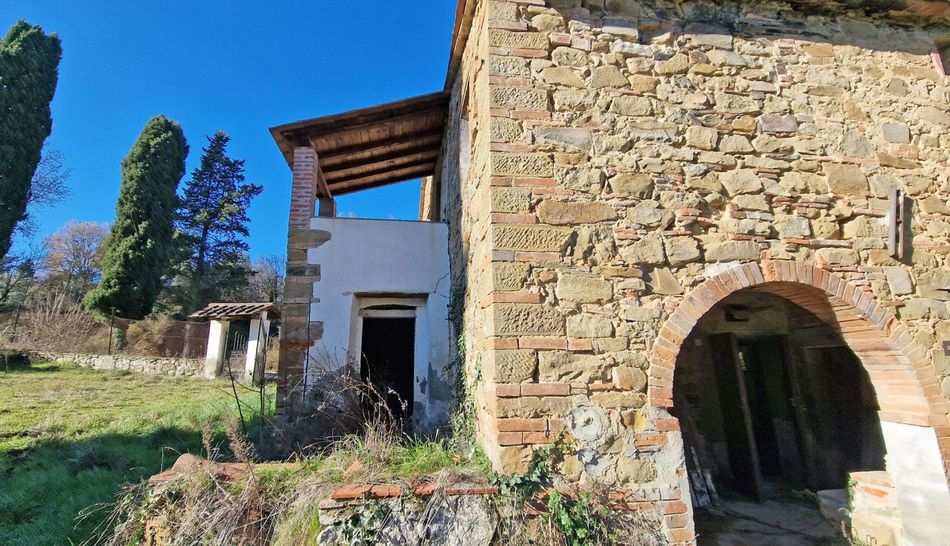 Stone property to be restored dating back to 1750 consisting of the main house, an annexe and approximately 1 hectare of land with olive grove for sale in the beautiful Tuscan countryside, in the province of Arezzo.