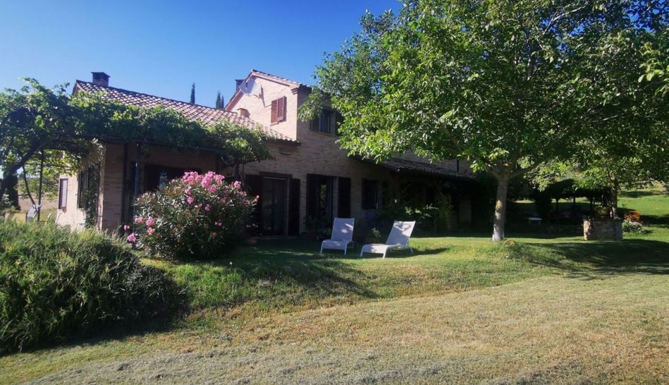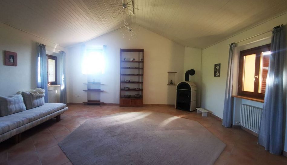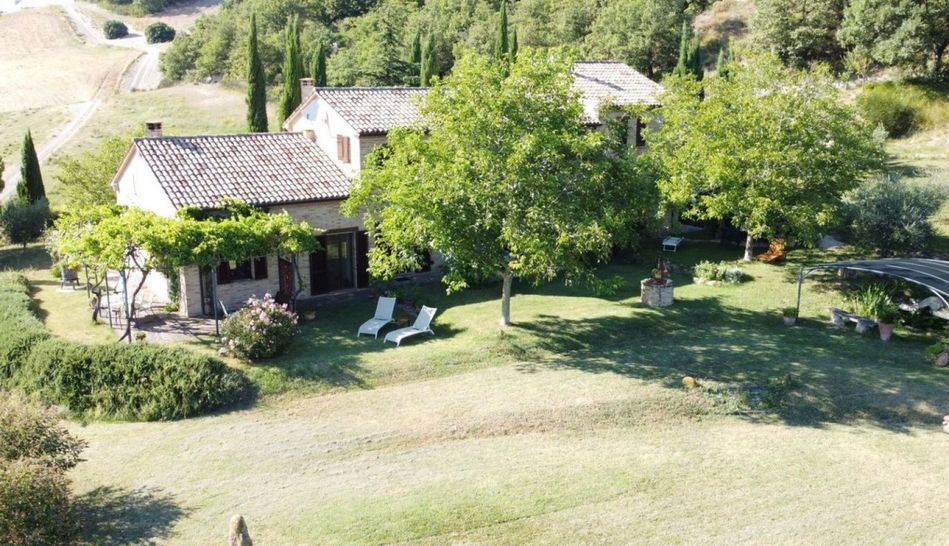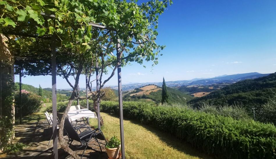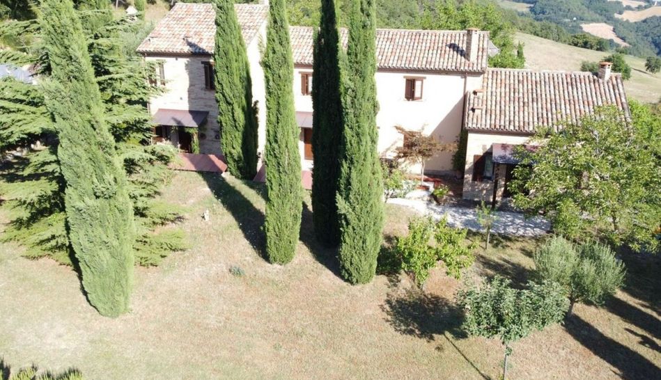 Large country house, renovated 20 years ago, preserving the taste, materials and shapes of the local rural tradition. The intervention, carried out almost 20 years ago, was aimed at a complete renovation of the building, addressing the foundations, earthquake resistance and thermal insulation. The heating of the house, in addition to the classic central system with LPG, also consists of four powerful wood stoves. The water supply is provided by public water pipes and by a groundwater well. In the garden of the house, of about 6,500 square meters, there is a small swimming pool, several gazebos, the vegetable garden, together with fruit trees and 50 olive trees. In addition, a photovoltaic system for the production of 3.5 kW. The house is designed as two independent apartments. The first, where the owner lives, is the largest. Spread over two floors and with enough space inside for a small two-room apartment for guests: space that can be reconnected to the main house or, as now, kept separate for friends or guests. This two-room apartment is located next to the main house, where on the ground floor there is a living room, a kitchen, a bathroom and a closet and on the first floor there are 2 bedrooms, a bathroom and a closet. The country house is located in a very panoramic position overlooking the entire Metauro Valley and is about 12 km away from Fossombrone and 24 km from Fano, the coast and the sea.