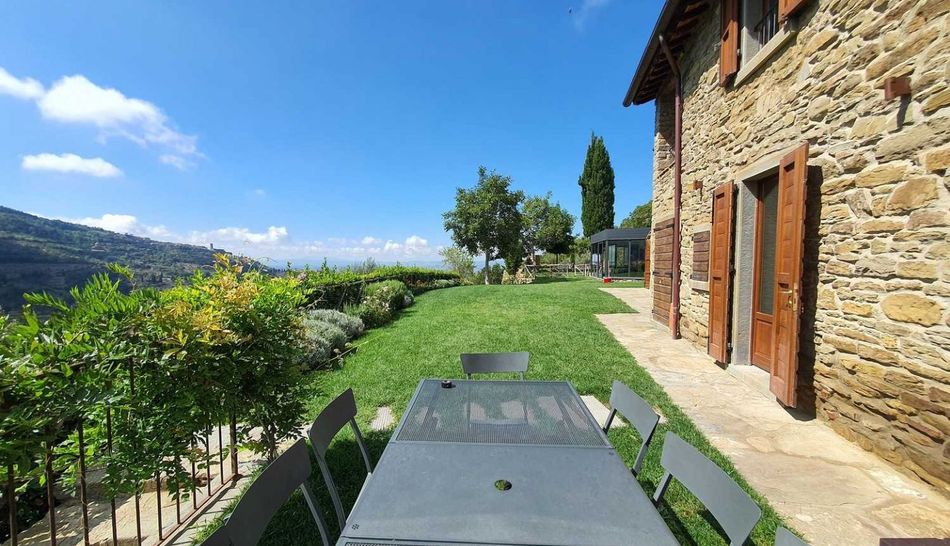 The enchanting property stands in a panoramic position in a beautiful village between Umbria and Tuscany, an ideal starting point for exploring both regions.