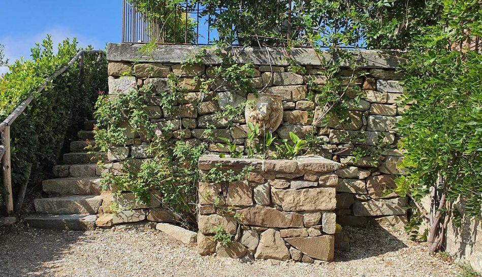 The surrounding land of approximately 30,000 square metres is partially dedicated to a garden and partially to an olive grove.