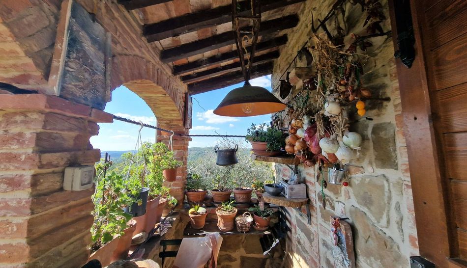 The finishes and furnishings reflect the typical rustic style of the Tuscan countryside, such as the terracotta floors, the brick arches and the ceilings with exposed wooden beams. All the materials are mostly original of the period.
