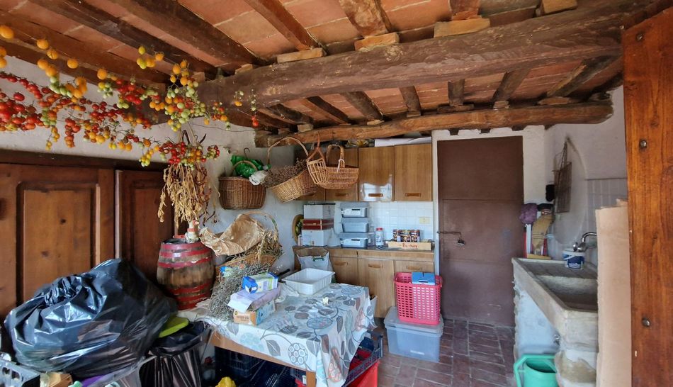 On the ground floor there are the old rooms, which are currently used as storerooms, cellar, etc. A beautiful external stone staircase leads to a loggia, typical of Tuscan rural farmhouses, from which there is access to the first floor, consisting of a living room, a kitchen, three bedrooms and 2 bathrooms.