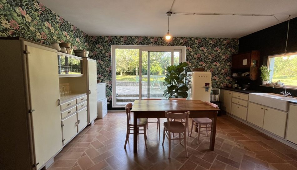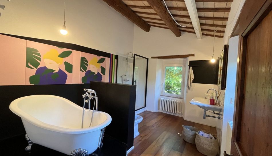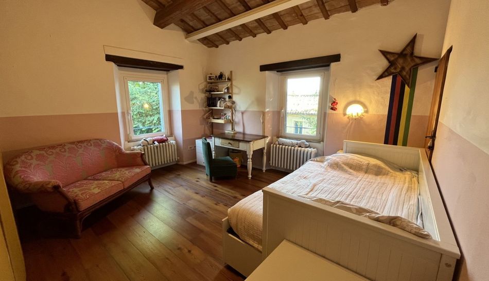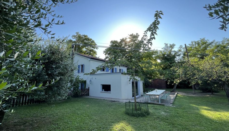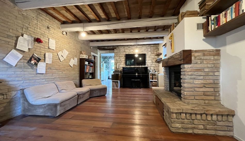 Detached house located in a small Borghetto 20 minutes drive from the town of Fano and the beach. The house has a fully enclosed garden of approximately 1100 m2. It was completely restored in 2009 and many of the old features have been retained . The ground floor consists of two large living rooms, one with a fireplace and this room has access to a large open kitchen which opens through large sliding windows to the garden where there is a large terrace and a bathroom and laundry room under the stairs. On the first floor : 3 bedrooms and a large bathroom with bath and shower. The house has oak floors and traditional terra cotta tiles in the kitchen. Water from the municipality and heating via a pellet stove or traditional gpl. The house is equipped with a wireless alarm system.