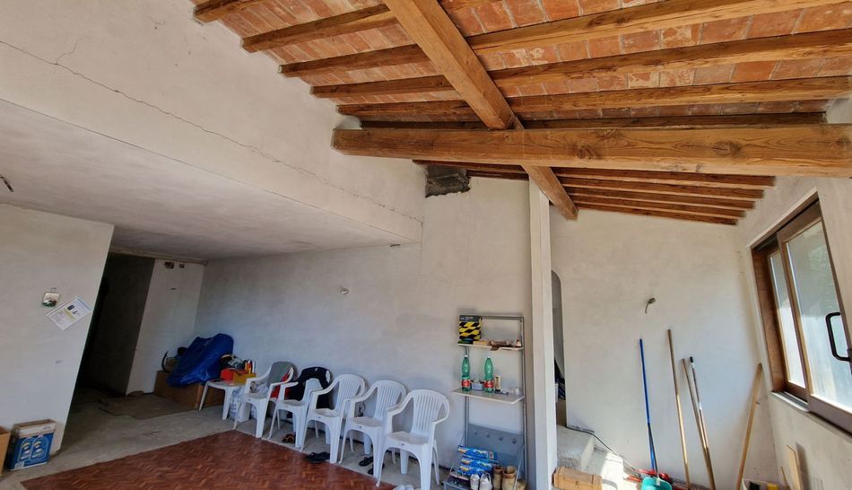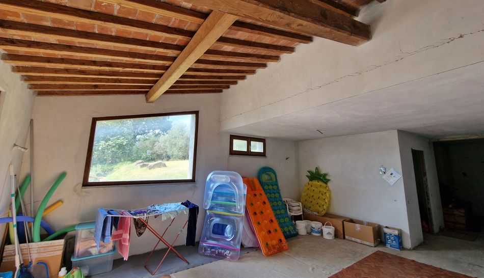 On the basement floor there are some rooms that can be used to improve the liveability according to the needs of the inhabitants and a large, very bright area, with wide windows and openings that directly access the garden and ceilings with beams and tiles.