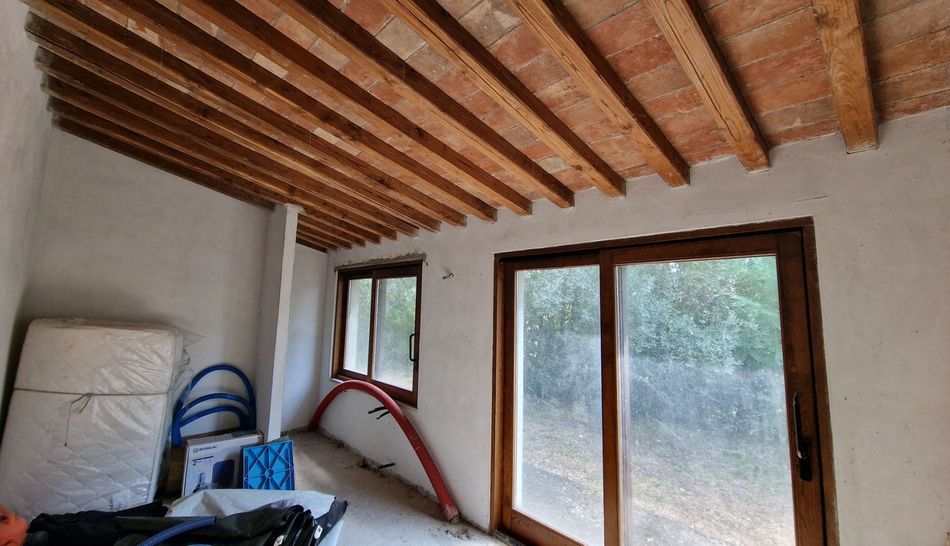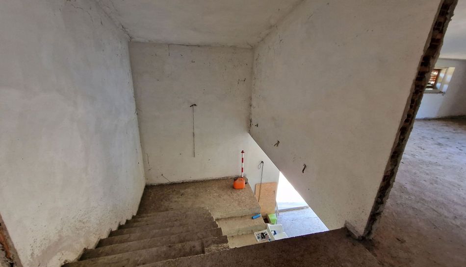 An internal staircase leads to the second floor, where the sleeping area is located. As it is not yet completed, the rooms can be customised and used according to personal requirements.