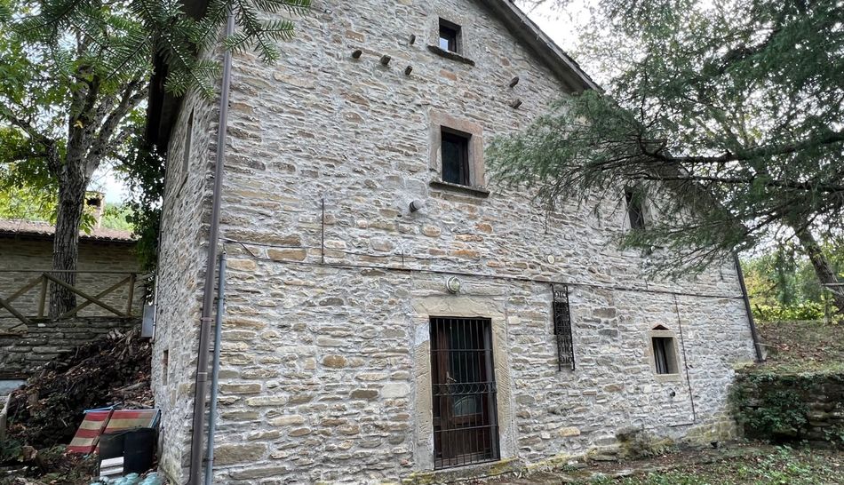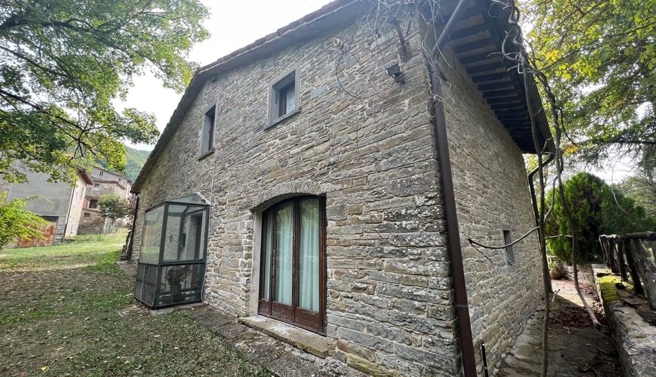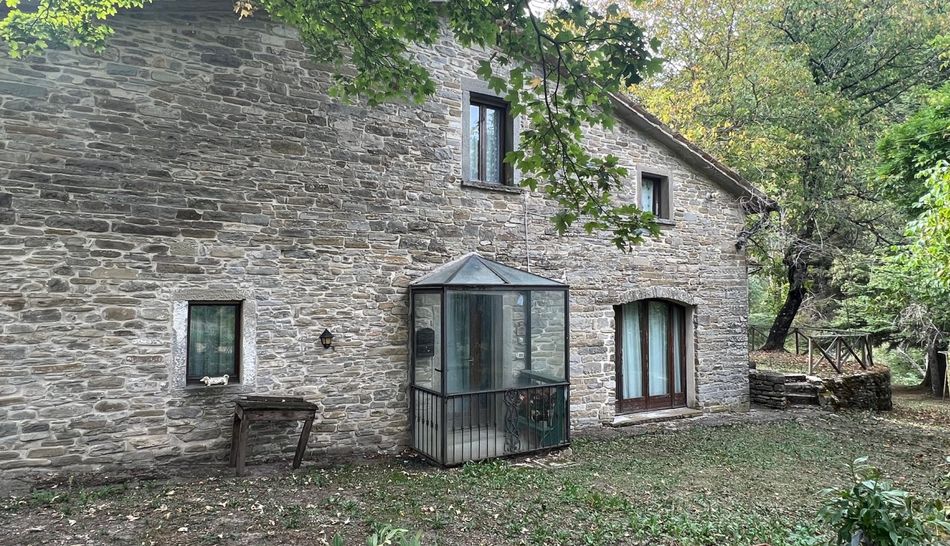 Non lontano dal centro di Borgo Pace, ubicata in posizione comoda, proprietà composta da due fabbricati in pietra con giardino. Usciti dal paese si raggiunge un piccolo complesso residenziale dove i due edifici sono ubicati proprio sulla riva di un bellissimo fiumiciattolo. Il terreno di oltre 1.500 m2 è direttamente adiacente all'acqua fresca e pulita. La casa principale è stata completamente e recentemente ristrutturata, conservando la particolare atmosfera che regala sensazioni di antiche tradizioni e tempi passati. Al piano terra, ampia sala con camino, cucina, loggia e wc. Al primo piano 3 ampie camere da letto ed un bagno. Riscaldamento con GPL. La seconda unità necessita di alcuni lavori di manutenzione e ristrutturazione interna. Al piano terra soggiorno, soppalco e cucina. Al piano seminterrato da cui si accede direttamente al giardino, due locali ed un bagno.