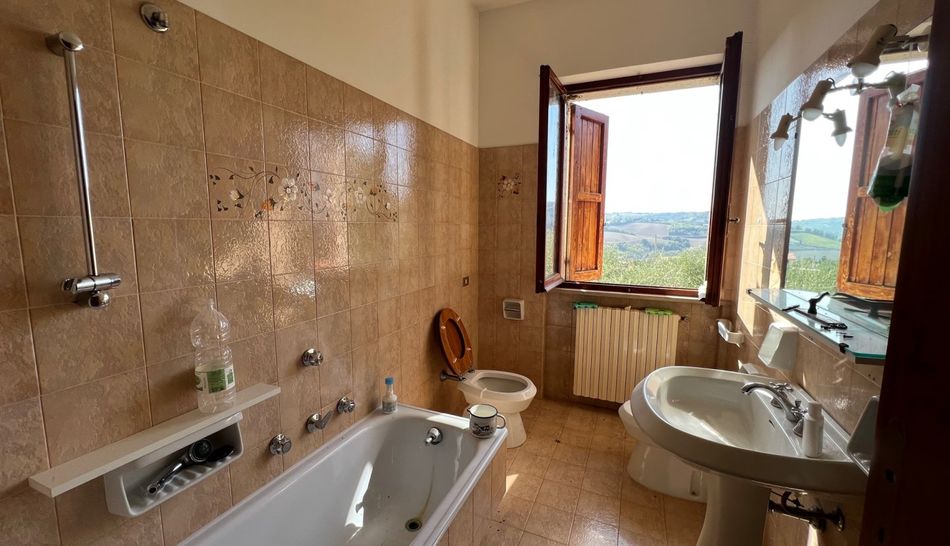 Casa singola edificata negli anni 70 situata a 5 Km da Mombaroccio e a 20 min dalla costa. Il fabbricato si trova ai lati di una comoda e tranquilla strada, la posizione e' molto panoramica con vista sulla vallata del Metauro e sulle antistanti colline. Il terreno di pertinenza e' di 5.000 mq con oltre 186 ulivi. Internamente e' cosi suddivisa: ingresso, bagno, due stanze, loggia e un ampio garage al piano terra. Attraverso una scala interna si accede al piano primo dove troviamo il grande soggiorno, il cucinotto, tre camere da letto, il bagno e due terrazzi. Al piano secondo il sottotetto. La casa necessita necessita di ristrutturazione completa. Acqua comunale e pozzo di raccolta delle acque piovane.