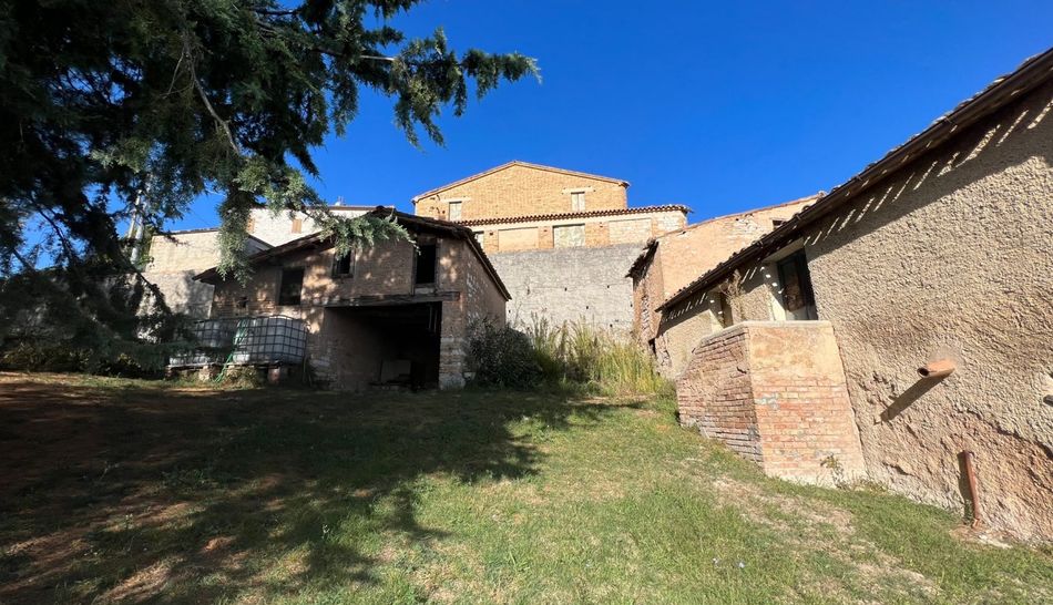 Oggetto di vendita è un complesso di immobili siti nei pressi di Palazzo, uno dei castelli di Arcevia. È più riconosciuta come città “murata”, cioè fortificata da mura, assolutamente uniche nella sua struttura architettonica e situata ai piedi del Monte Caudino. Si trova a 38 km da Senigallia, e dall'autostrada A 14, per tutti i servizi come supermercato, banca, farmacia, ecc. Arcevia è il centro di riferimento che dista pochi minuti. Il complesso in vendita, con giardino di circa 2.000 mq, è costituito da un fabbricato di più recente costruzione, abitabile da subito. Le finiture ed il design sono ovviamente riconducibili all'epoca della realizzazione. Gli spazi interni sono, come era tipico e consueto ampi. Al piano seminterrato si trovano il garage, il locale tecnico e due magazzini, al piano terra si trovano l'ingresso, la cucina, il soggiorno, il corridoio, due bagni e tre camere da letto. Tramite scala interna di collegamento si accede al piano primo composto da 5 ampi vani, doppi servizi, ripostiglio e 4 terrazzi. Al secondo piano la mansarda con terrazzo. Un secondo fabbricato di epoca molto più antica da ristrutturare è posto nella parte retrostante ed è composto da due stalle al piano terra, 5 vani ed un forno al primo piano, mentre al secondo piano si trova la soffitta con magazzino ed un terzo fabbricato indipendente su unico livello di tre vani da ristrutturare. Le utenze sono disponibili