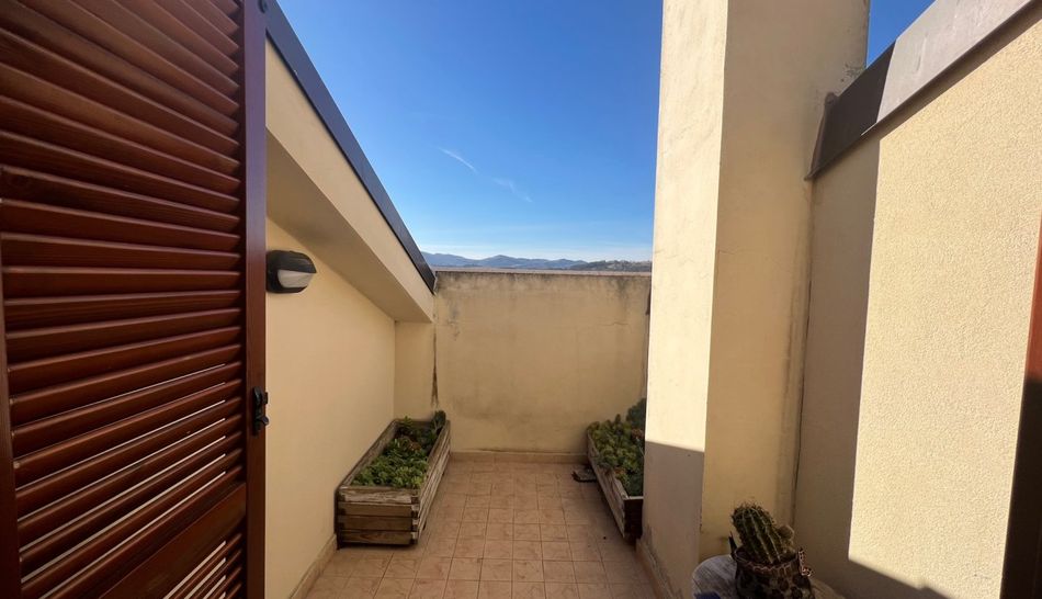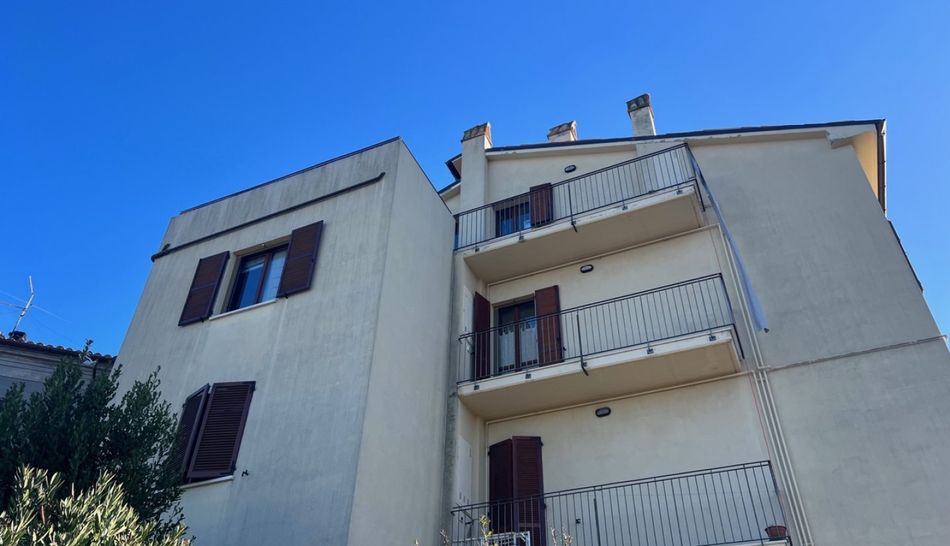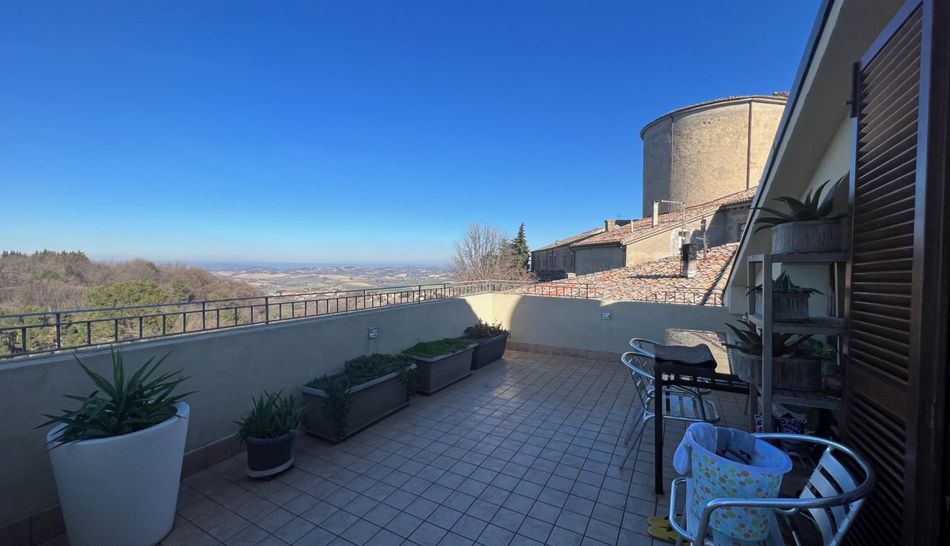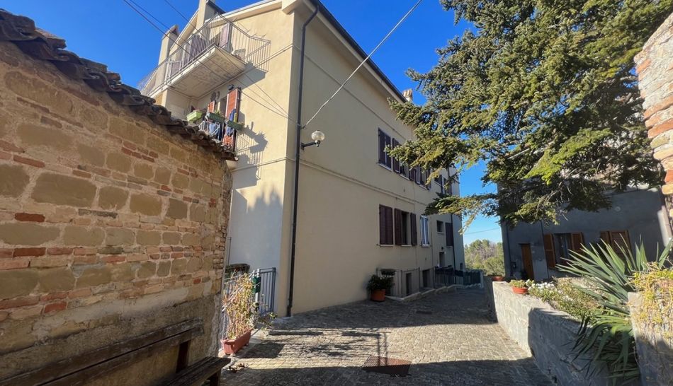 Appartamento facente parte di un condominio ad uso residenziale situato sulle antiche mura della città di Mombaroccio, a 18 km dalla costa con le spiagge di Pesaro e Fano e tutti i servizi necessari sono raggiungibili in pochi minuti. L'appartamento è situato al terzo piano e gode di una fantastica vista, è in ottime condizioni ed è così suddiviso: ingresso, soggiorno con camino, cucina e terrazzo panoramico, camera con terrazzo, bagno, una seconda cameretta. L'appartamento dispone di un garage e di due posti auto nel cortile dello stabile.