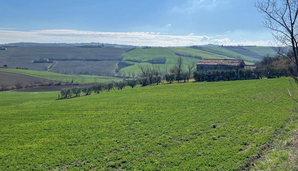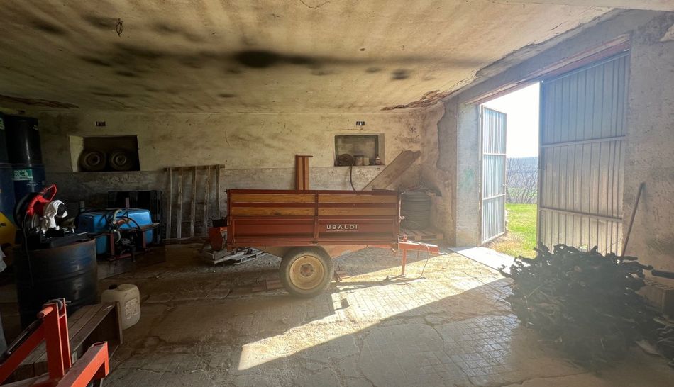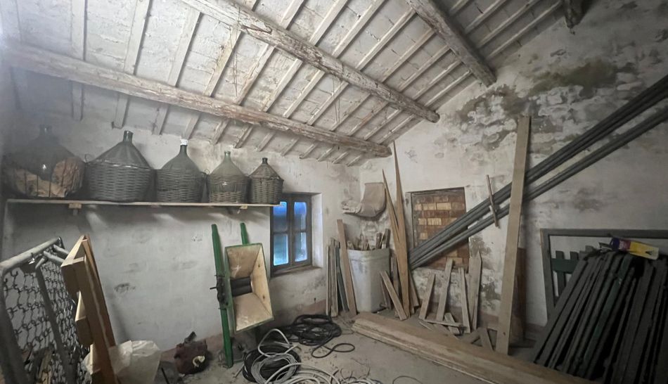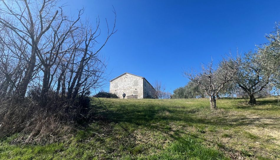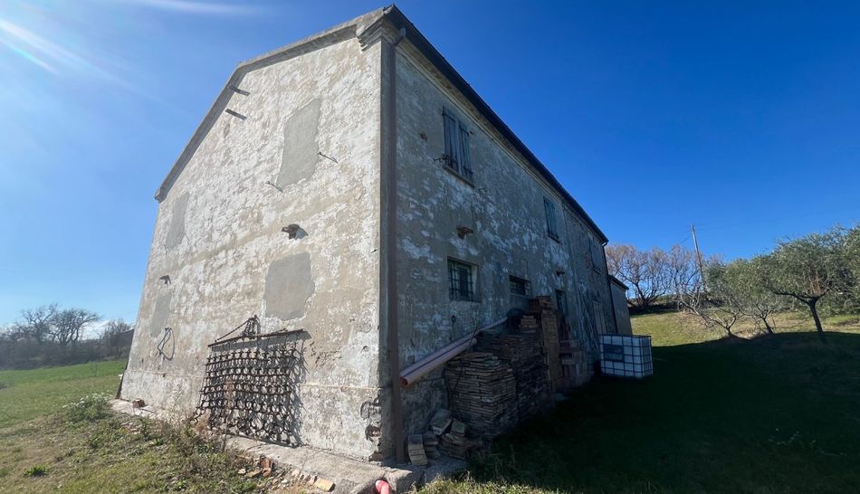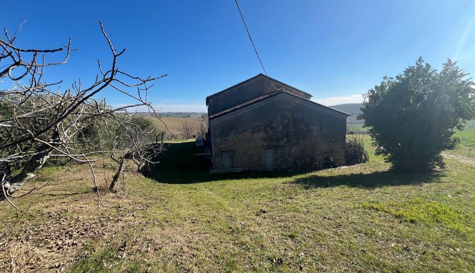 Dalla strada provinciale che porta verso la costa si raggiunge una comoda strada di campagna che conduce alla casa. Il casale in mattoni da ristrutturare ha una bellissima vista verso sud-est, ha un giardino di 3.000 mq con diversi alberi di ulivo. L'acqua comunale è da allacciare ma si trova appena fuori dalla proprietà. Al piano terra dell'azienda agricola si trovano le vecchie stalle, magazzini e cantina. Al primo piano: 6 ampie stanze.