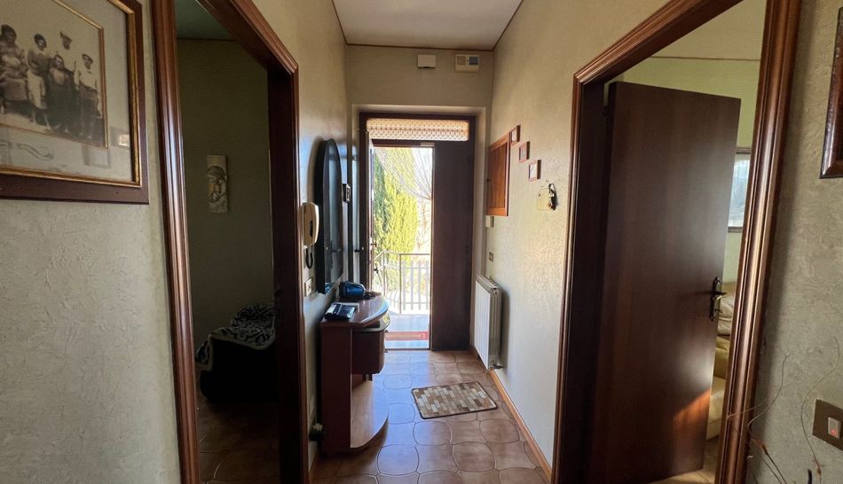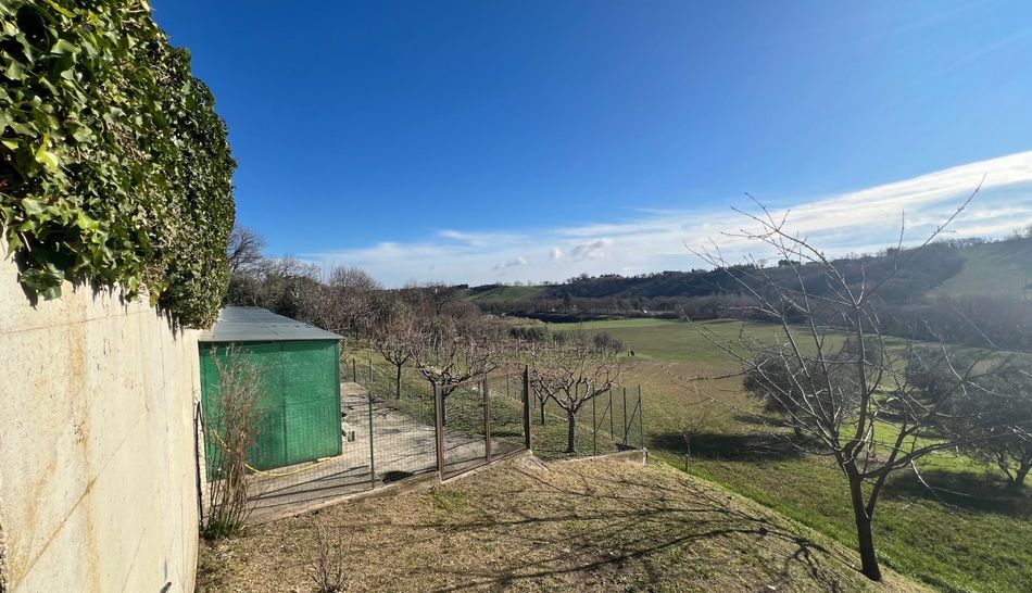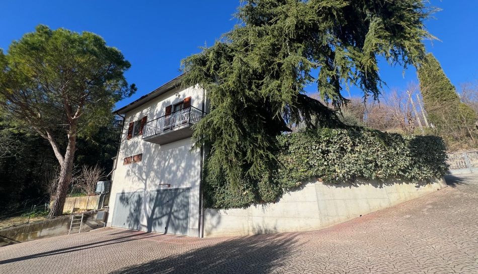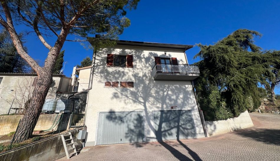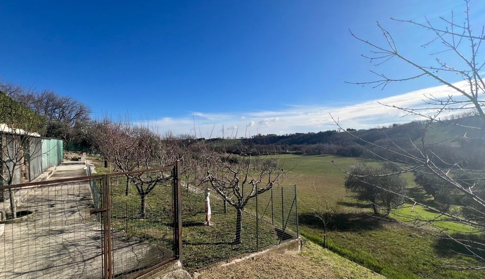 Nei pressi dei paesi di San Ginesio e Montefortino (AN), questa casa abitabile è abbinata da un lato ad un'altra abitazione, ma dispone di accesso, giardino ed utenze indipendenti. La proprietà è raggiungibile tramite una strada di campagna comunale. La posizione offre una vista che spazia su tutta la vallata con sullo sfondo il paese di Arcevia, dove si possono trovare tutti i servizi necessari. La costa e Senigallia sono raggiungibili in trenta minuti di auto. La struttura, i materiali di finitura e la disposizione interna si riferiscono all'anno di costruzione della casa, che risale alla fine degli anni '70. Il terreno annesso ha una superficie di circa 8.000 mq, sul quale sono presenti più di 40 piante di ulivo ed altri alberi da frutto. . Al piano terra si trova la taverna con cantina, magazzini, wc e un locale con forno funzionante. Al piano primo, con accesso da scala esterna, cucina, soggiorno, 2 camere e bagno, oltre a terrazzo. Al piano secondo la soffitta con altezza centrale di 1,90 m. Un ampio garage completa il piano terra