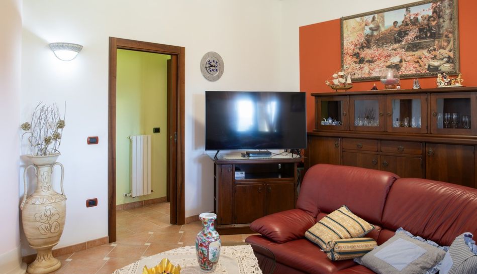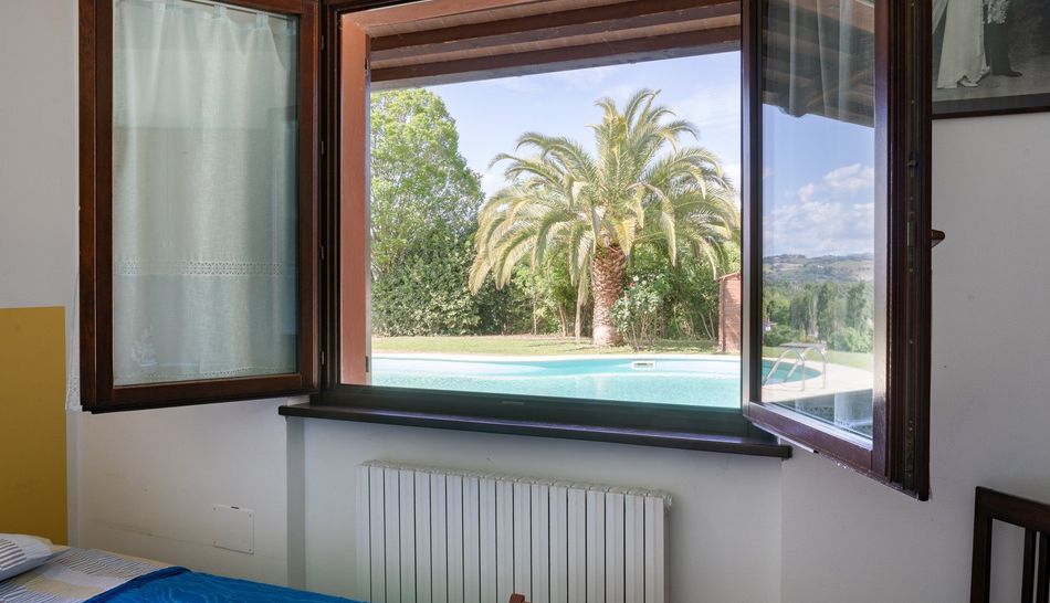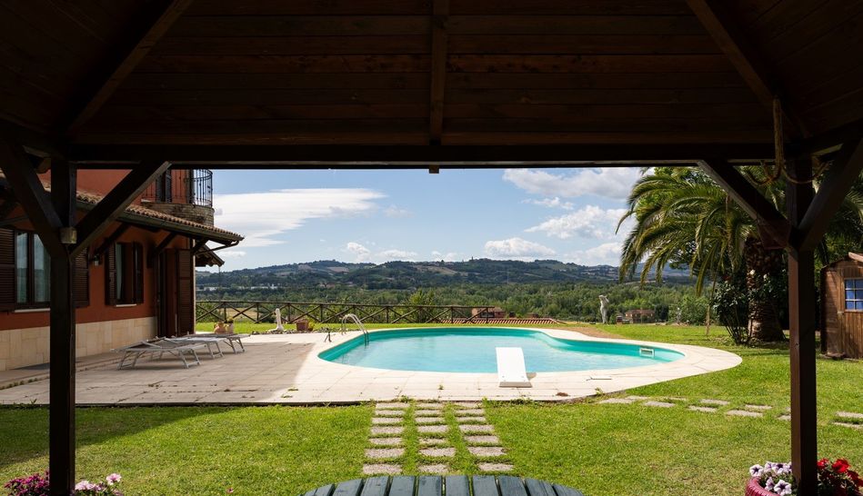 In posizione di media collina, comodamente raggiungibile, casa singola con piscina e giardino esclusivo. Il fabbricato e' stato ristrutturato a fine anni 90, ed attualmente e' cosi suddiviso: al piano terra l'abitazione principale di oltre 150 mq, con ampio soggiorno da cui si accede direttamente al porticato, cucina, due camere matrimoniali, una cameretta, studio e due bagni finestrati. Al piano seminterrato l'ampia taverna con camino, lavanderia, bagno oltre ad ampio garage di 90 mq. Il piano primo si trova attualmente allo stato grezzo con predisposizioni degli impianti e puo' essere frazionato e completato come seconda unita' abitativa. Il giardino esclusivo e' di circa 3.000 mq sul quale si trova una piscina da cui godere la vista panoramica e il silenzio del luogo. Completa la proprieta' l' orto in corpo staccato, munito di pozzo per l' irrigazione. . Acqua del comune, due pozzi e di consorzio.