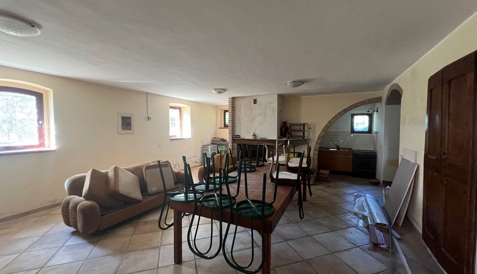 In posizione sopraelevata ma in zona pianeggiante è ubicato questo complesso immobiliare, ristrutturato e completato nel 2015. Composto da 3 unità abitative oltre a locali accessori . Al piano terra ampi locali con destinazione agricola utilizzati per le degustazioni dell'olio ed ampio garage. In corpo staccato un capanno, un frantoio completamente attrezzato e dotato di macchinari ed un vecchio silos in disuso.