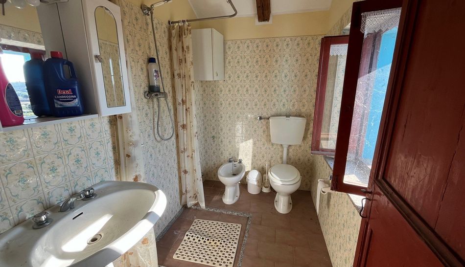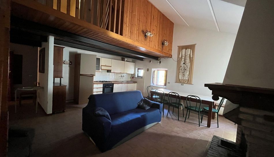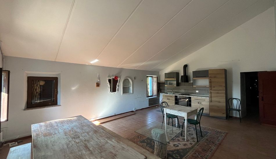 APPARTAMENTO 1 Al piano primo : composto da zona pranzo con cucina, bagno , studiolo, camera con WC, scala a cui si accede ad una grande camera posta al piano secondo sottotetto.