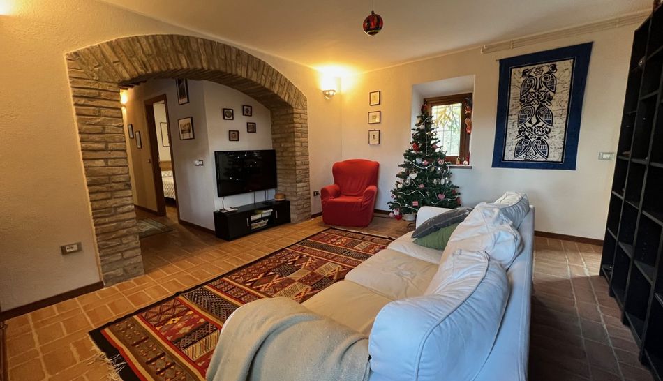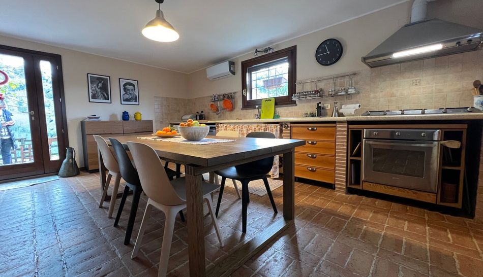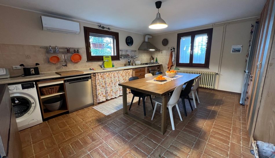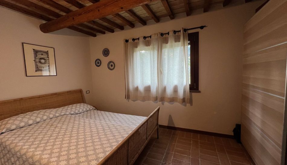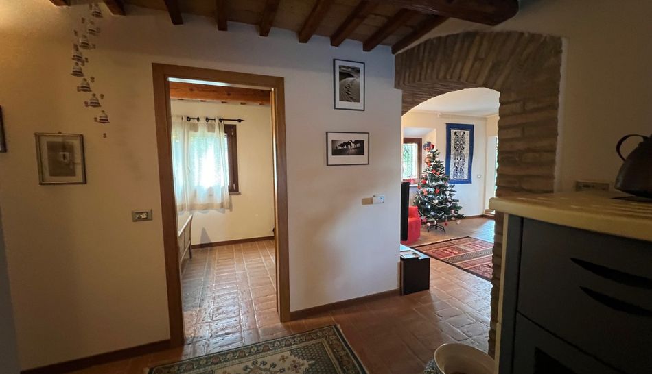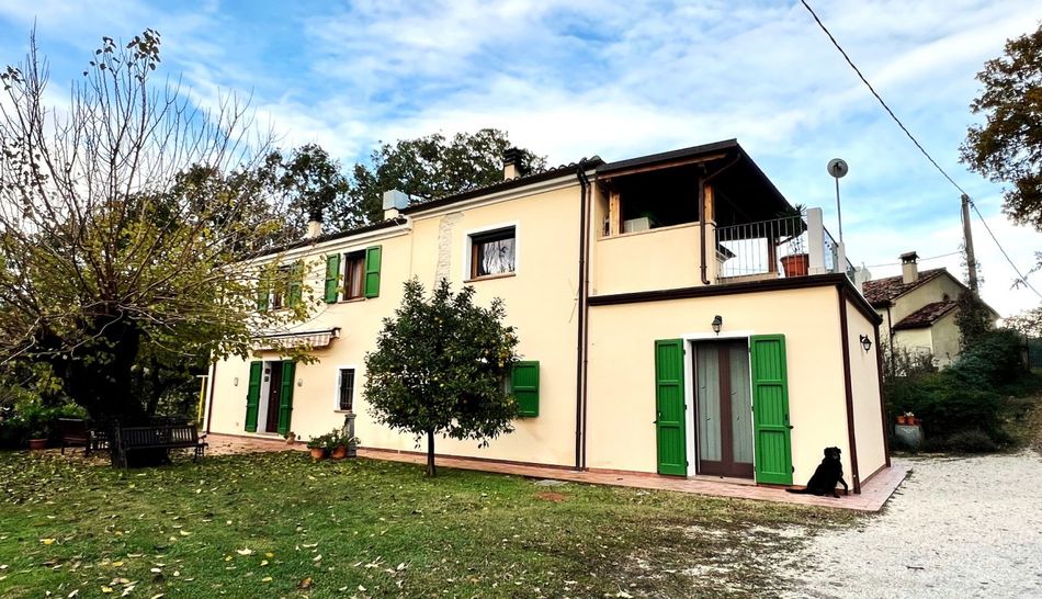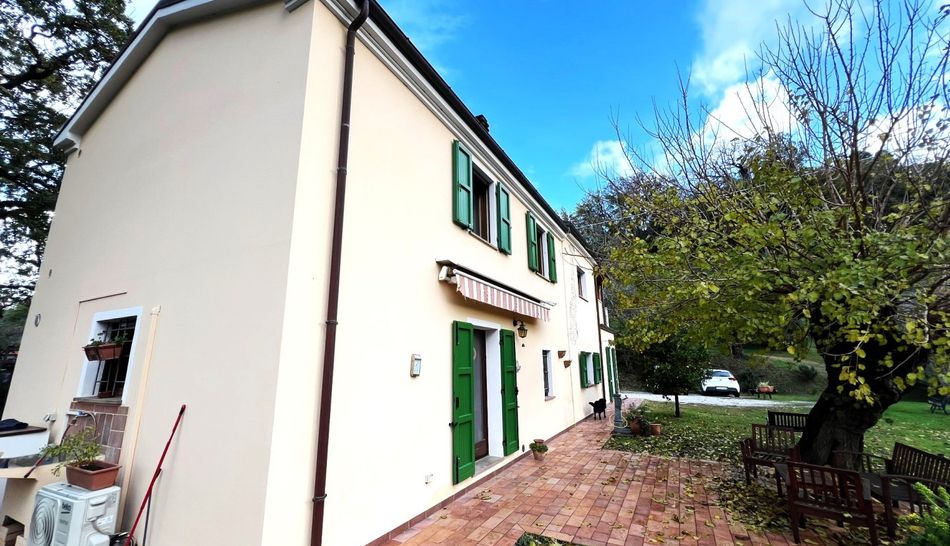 Casa colonica non lontana da Pesaro (loc. Ginestreto), completamente ristrutturata suddivisa in due appartamenti, La proprieta' e' completa di 1.5 Ha di terreno con uliveto ed e' raggiungibile attraverso una strada di campagna asfaltata che termina direttamente al fabbricato. Al piano terra ampia cucina, soggiorno, 2 bagni e due camere da letto. Al piano primo si accede attraverso un acceso indipendente. Cucina/soggiorno, due camere da letto di ampie dimensioni, un bagno e una terrazza. E' presente un impianto fotovoltaico da 6 Kw. Riscaldamento con impianto a Gpl e stufa a pellet . Acqua comunale.
