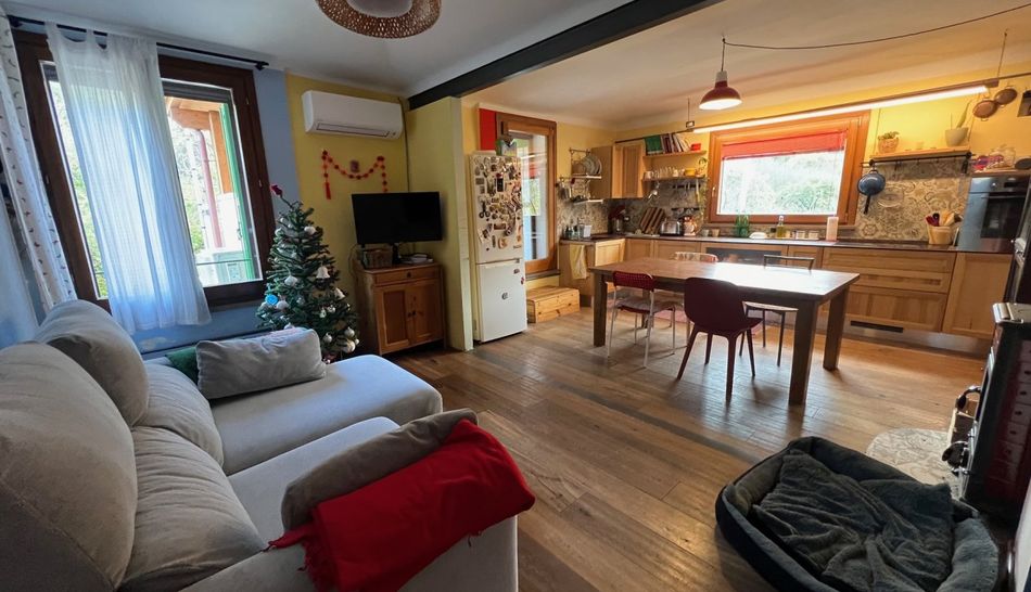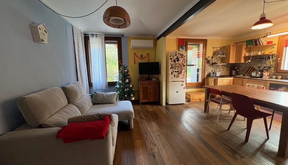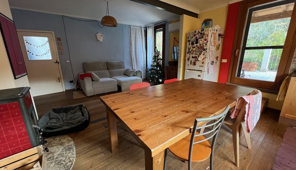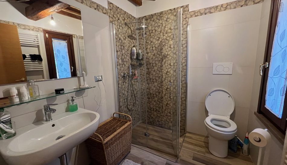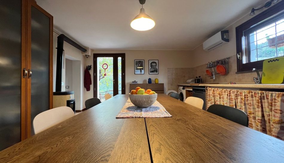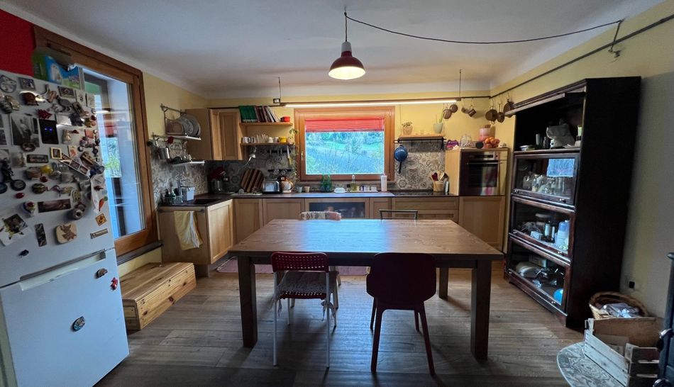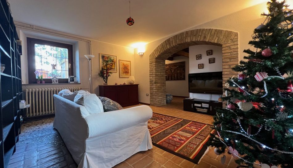 Casa colonica non lontana da Pesaro (loc. Ginestreto), completamente ristrutturata suddivisa in due appartamenti, La proprieta' e' completa di 1.5 Ha di terreno con uliveto ed e' raggiungibile attraverso una strada di campagna asfaltata che termina direttamente al fabbricato. Al piano terra ampia cucina, soggiorno, 2 bagni e due camere da letto. Al piano primo si accede attraverso un acceso indipendente. Cucina/soggiorno, due camere da letto di ampie dimensioni, un bagno e una terrazza. E' presente un impianto fotovoltaico da 6 Kw. Riscaldamento con impianto a Gpl e stufa a pellet . Acqua comunale.