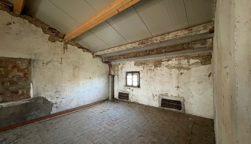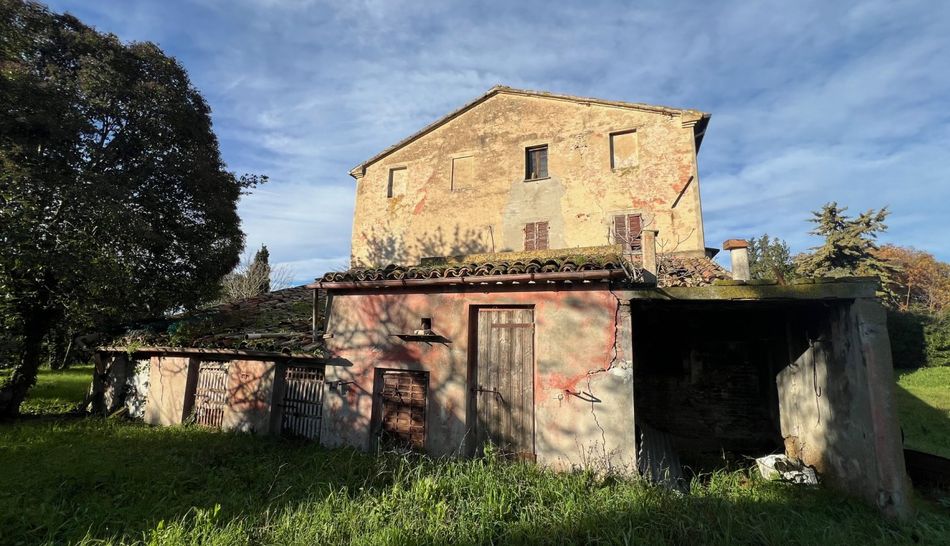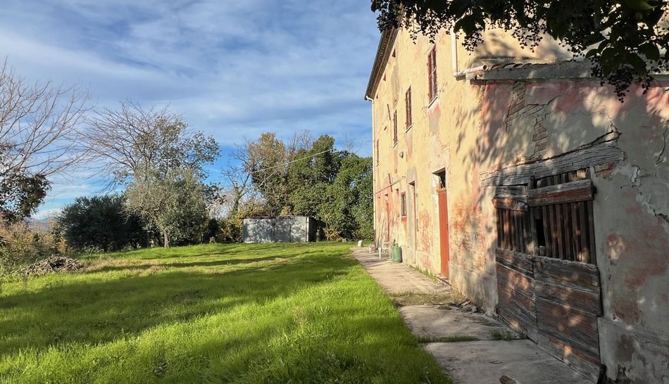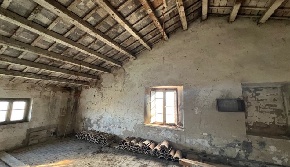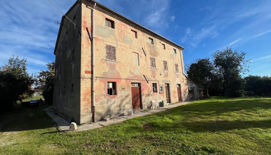 A pochi passi dal paese, in comoda posizione, ampio casolare da ristrutturare circondato da 4.700 mq di corte esclusiva con ulivi. La vista e' dominante, rivolta a sud-ovest, sullo sfondo gli Appennini, sul fronte le tipiche colline del nostro entroterra con i vigneti a farne da protagonisti. Attualmente e catastalmente, la casa e' cosi suddivisa: 2 ampi locali cantina, un grande magazzino ,numerosi ripostigli, w.c. e lavanderia al piano terra. Al piano primo, 4 camere da letto, ripostiglio, cucina e bagno. Al piano secondo sottotetto ( altezza centrale 4 metri) si trovano 3 ampi ripostigli. Completano piccoli accessori in corpo staccato. Utenze in zona da ripristinare.