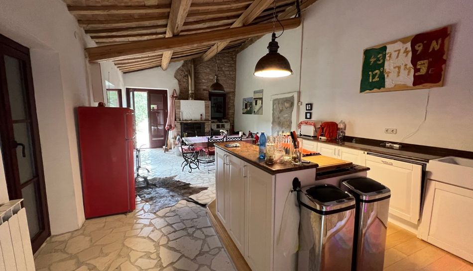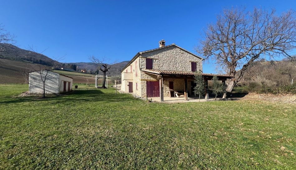 In un incantevole contesto, non lontana da Fossombrone e raggiungibile facilmente, casa colonica in pietra con giardino di circa 3.000 mq. L'immobile presenta le tipiche caratteristiche delle case rurali, l'atmosfera che si respira e' autentica grazie alla conservazione dei materiali originali del fabbricato. Il piano terra e' immediatamente abitabile ed e' cosi suddiviso: soggiorno e cucina open space, due camere da letto, bagno e zona sauna. Esternamente troviamo il forno e una piccola loggia. Il piano seminterrato, attualmente non collegato con il livello superiore, e' completo di due ampi vani a destinazione cantina, oltre a bagno, locale tecnico, ampia tettoia e pozzo. Completano il tutto un annesso in corpo staccato di ampia metratura e un secondo di dimensioni piu' ridotte.