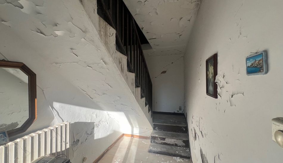 Attualmente e catastalmente la casa e' cosi suddivisa: Tre locali di ampia metratura a ripostiglio, pollaio, cucinotto, cantina e grande disimpegno al piano terra. Al piano primo: ripostiglio, bagno e quattro camere oltre a terrazzo. Le utenze sono presenti in zona.