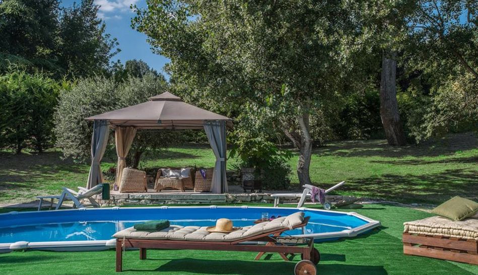 La proprietà è composta da 3 ettari di terreno e una piscina. La casa è riscaldata tramite gas GPL e l'acqua è fornita tramite acqua di sorgente che viene raccolta in un pozzo e distribuita tramite una pompa su 8 serbatoi d'acqua.