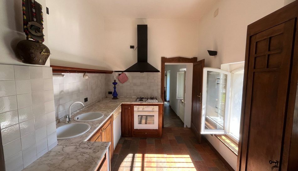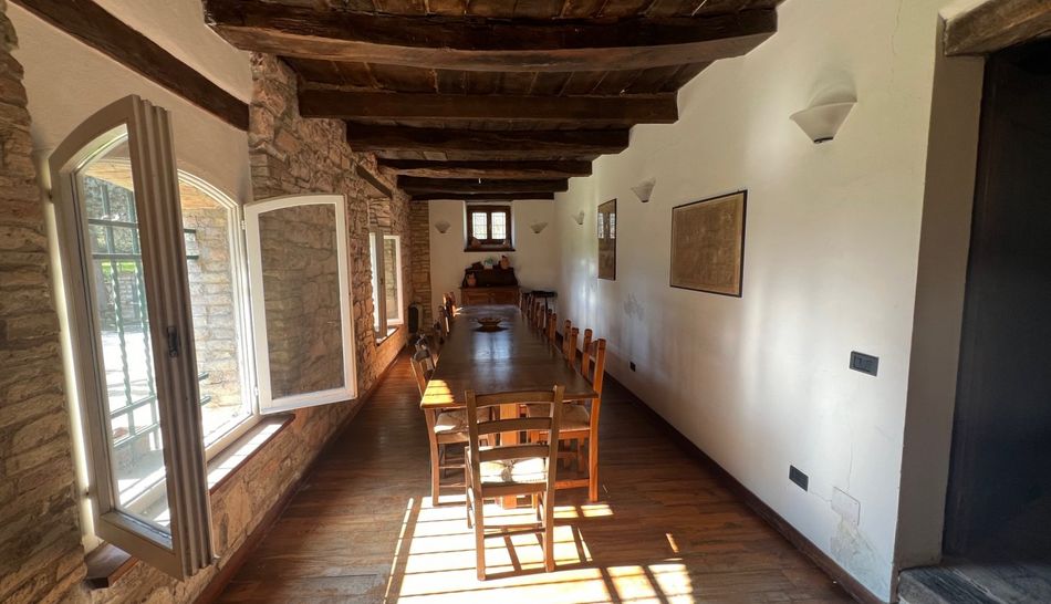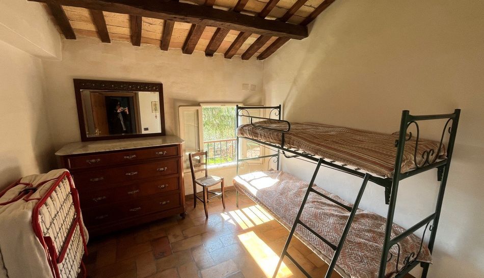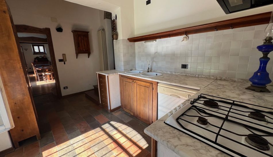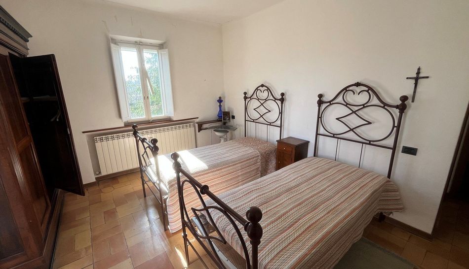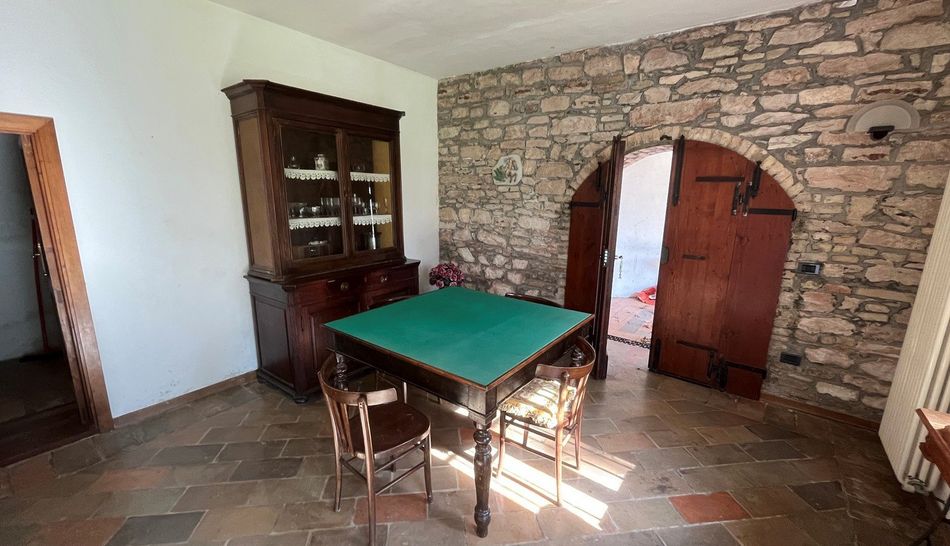 Pergola, la Città delle 100 Chiese e dei bronzi dorati, è un delizioso borgo nell’entroterra marchigiano ed offre non solo bellezze storiche e culturali, ma anche bontà enogastronomiche tutte da scoprire. Questo casale sorge nelle immediate vicinanze del centro storico, in posizione di media collina all'interno di un piccolo agglomerato urbano. Il fabbricato oggetto della vendita, è la porzione più rilevante posta sul fronte principale sul quale si sviluppa anche tutto il giardino di proprietà esclusiva oltre al sottostante terreno agricolo. Lo scoperto complessivo è di circa 9.500 mq sui quali insiste, in corpo staccato, anche un accessorio di circa 60 mq con ripostigli posizionati su due livelli. Il fabbricato si presenta esternamente con le facciate in pietra e mattoni, internamente è abitabile immediatamente. Tuttavia, sono necessari, in caso, aggiornamenti per rendere gli standard, attuali e perfettamente efficienti. Al piano terra a cui si può accedere da una loggia laterale, troviamo la sala, la cucina, zona pranzo, disimpegno, 4 locali cantina, wc e il vano scala centrale. Al piano primo: 3 camere da letto, bagno, terrazzo, wc e corridoio. Al piano secondo, una seconda unità immobiliare composta da cucina, disimpegno, bagno e due camere da letto. Riscaldamento con bombolone GPL