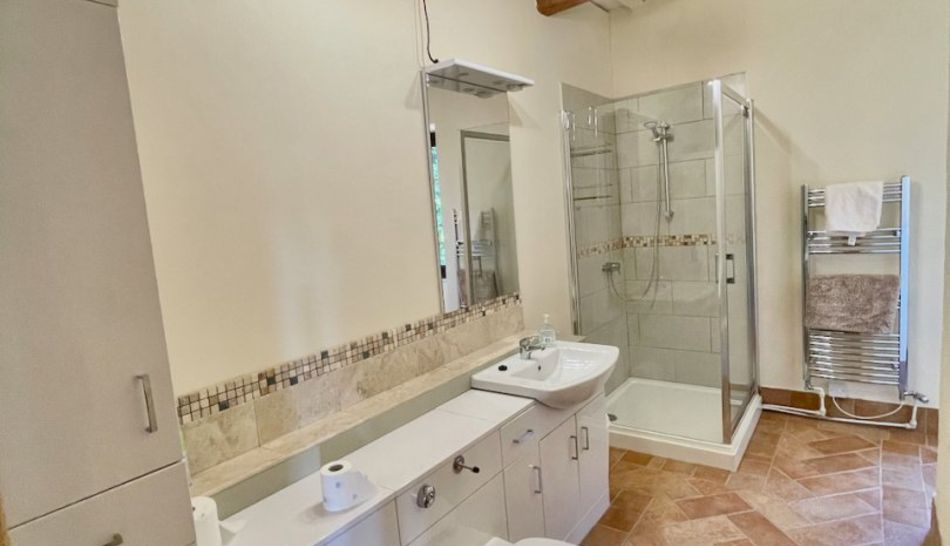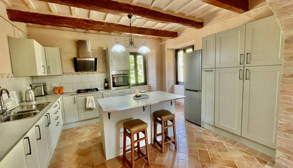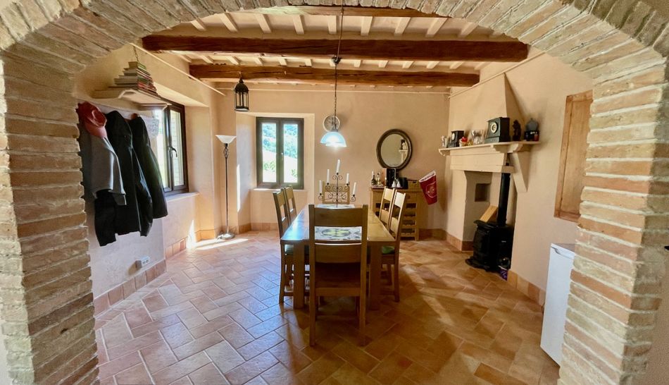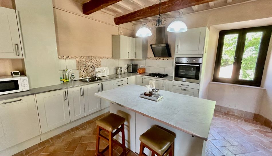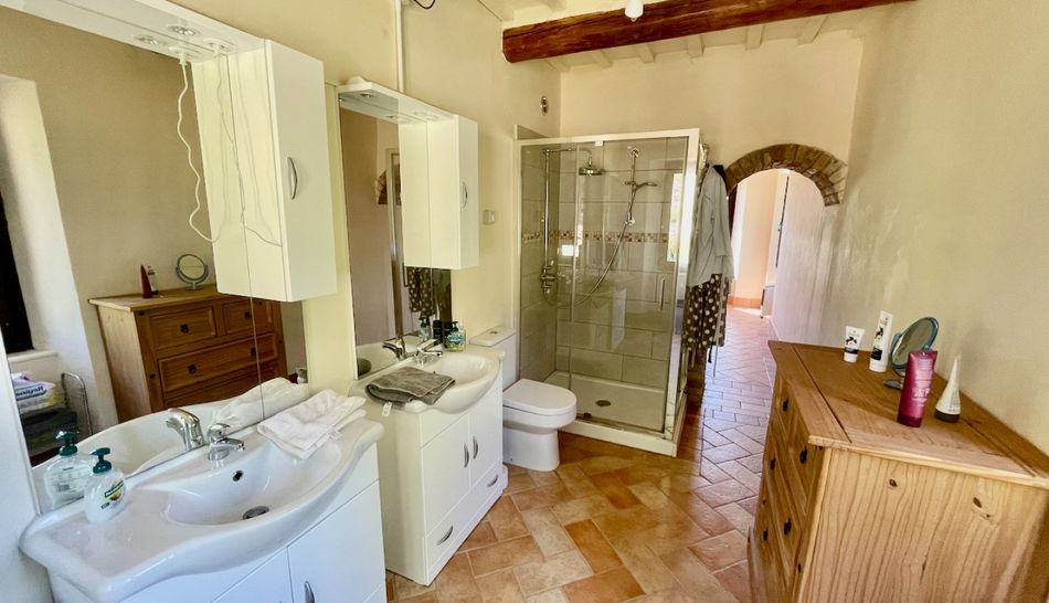 Casolare di circa 280 mq restaurato dagli attuali proprietari secondo tutte le normative edilizie applicabili. La casa si sviluppa su 4 piani. I due piani intermedi comprendono lo spazio abitabile e sono accessibili tramite un ingresso "a ponte" unico nel suo genere. Al piano d'ingresso c'è subito un grande spazio aperto che include una cucina moderna e attrezzata con isola centrale e la zona pranzo. Sulla destra c'è un soggiorno/salotto di dimensioni considerevoli con una splendida vista e molta luce naturale. Sulla sinistra c'è una stanza multiuso che è attualmente utilizzata come camera da letto. Salendo le scale, c'è un pianerottolo centrale. Da qui ci sono 3 camere da letto di dimensioni considerevoli. Due sono camere per gli ospiti e una è una classica suite padronale. Le camere degli ospiti sono molto comode e sono completate da finestre a doppia esposizione per ammirare il panorama e godere della luce naturale. Gli occupanti di queste camere condividono un bagno di famiglia molto grande e ben arredato. Dalla camera da letto vera e propria si passa attraverso un corridoio ad arco fino al bagno privato con doppi lavandini e specchi e una lussuosa doccia. Sempre su questo piano si accede allo spazio della soffitta, una soffitta standard adibita a ripostiglio. Il terreno è di 10.734 mq. Ci sono alcune sezioni pianeggianti e alcune in leggera pendenza. Una vera caratteristica del terreno è la squisita terrazza in pietra dietro la casa che in realtà fa parte di un'antica struttura che sorgeva sul terreno. La muratura in pietra su queste terrazze è unica e le piante naturali si combinano per creare uno splendido spazio abitativo all'aperto, completato ulteriormente dal pergolato/patio e dall'area panoramica sopra la casa