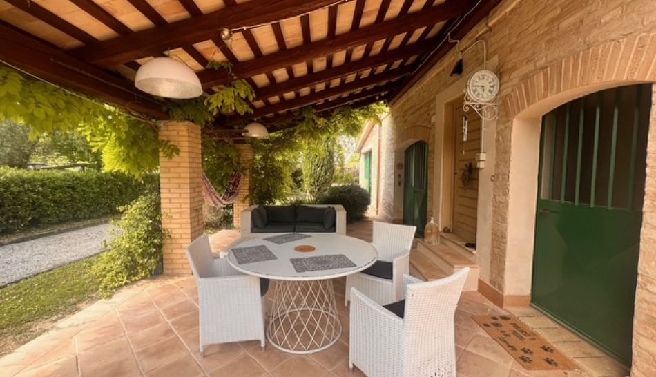 Monte Giberto è un piccolo comune marchigiano, situato tra il Mar Adriatico e i Monti Sibillini, le cui origini risalgono all'XI secolo. Porto San Giorgio dista 25 minuti d'auto, Fermo 18 minuti, Grottazzolina e Ponzano di Fermo circa 8 minuti. A pochi minuti dal centro di Monte Giberto troviamo questo affascinante casale in pietra, splendidamente ristrutturato, con un bellissimo giardino di 2.270 mq e un fabbricato indipendente adibito a dependance. Il giardino offre diversi angoli incantevoli per rilassarsi e godersi la pace e la natura, e dispone di una splendida piscina con spazio per pranzi e barbecue all'aperto.