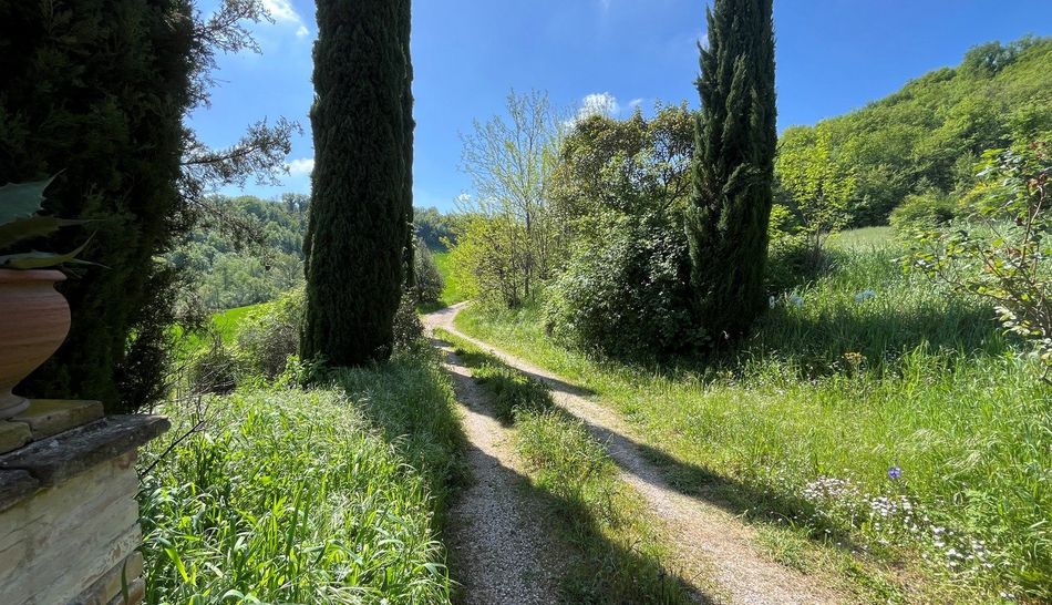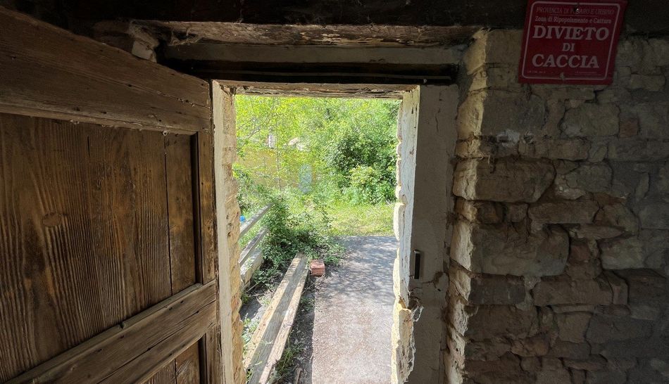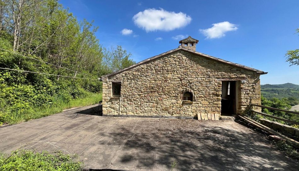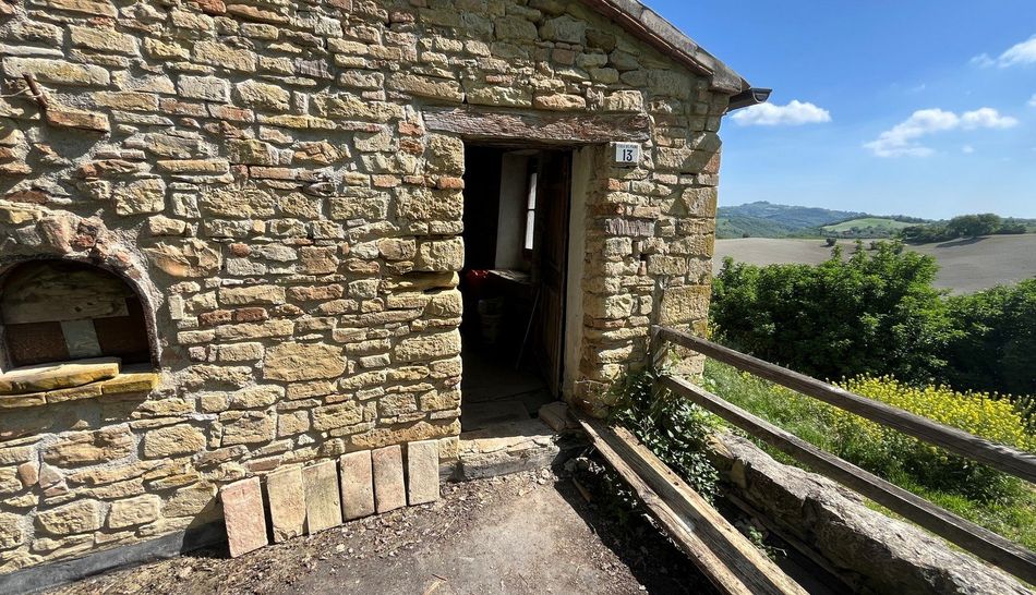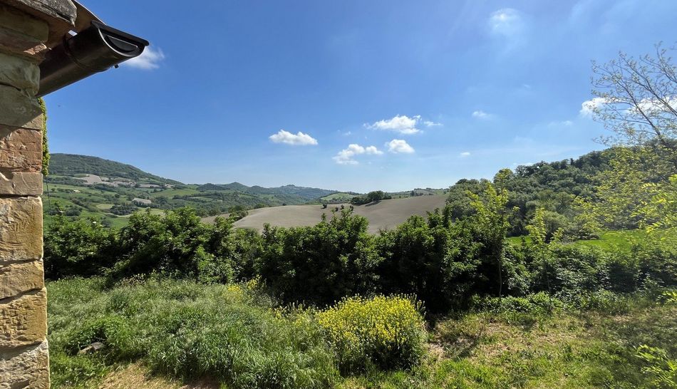Da Castelgagliardo si gode uno splendido panorama, che va dai Castelli circostanti (Monte Montanaro, Serrungarina, Bargni), alla valle del Metauro, al mare Adriatico sino alla costa, compreso il Monte Conero e a sud le pendici dei Monti Sibillini. Da qua, attraverso una strada di campagna fiancheggiata da ciliegi e altri alberi da frutto, acacie, querce e cipressi, si accede alla proprieta' oggetto della vendita. Si tratta di un casolare in pietra da ristrutturare con un accessorio di ampie dimensioni che si trova in corpo staccato. Nonostante la posizione molto riparata della casa, si gode di una vista molto bella. Il contesto e' quello tipico dei paesaggi rurali marchigiano con l'alternarsi di campi coltivati e di varie colture. l giardino terrazzato di oltre 6.000 metri quadrati ospita ulivi e alberi da frutto, oltre a un piccolo bosco che fornisce legna da ardere.