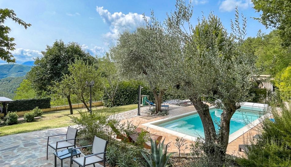•Barbecue in muratura, terrazze in pietra, alberi da frutto e ulivi