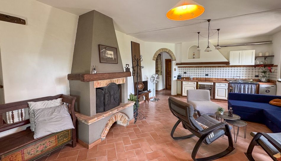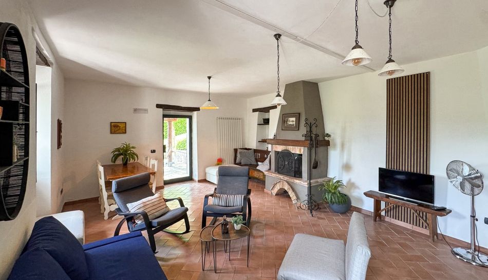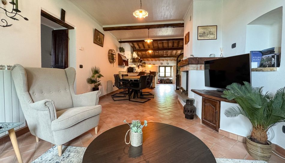 •Ampia cucina con zona pranzo e soggiorno con camino