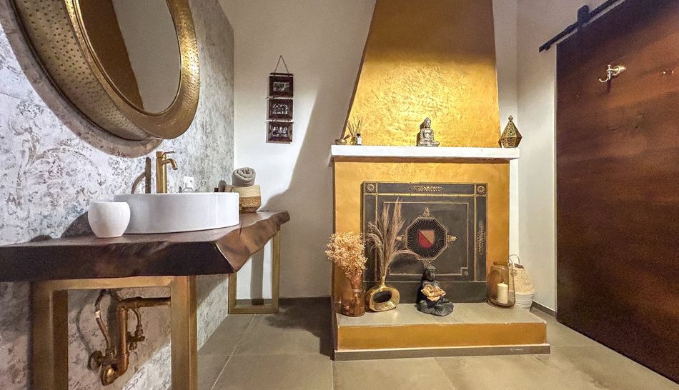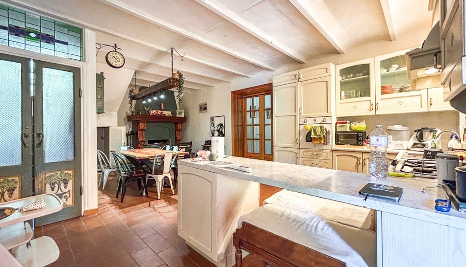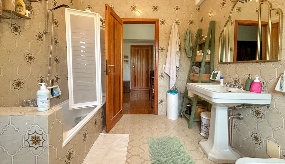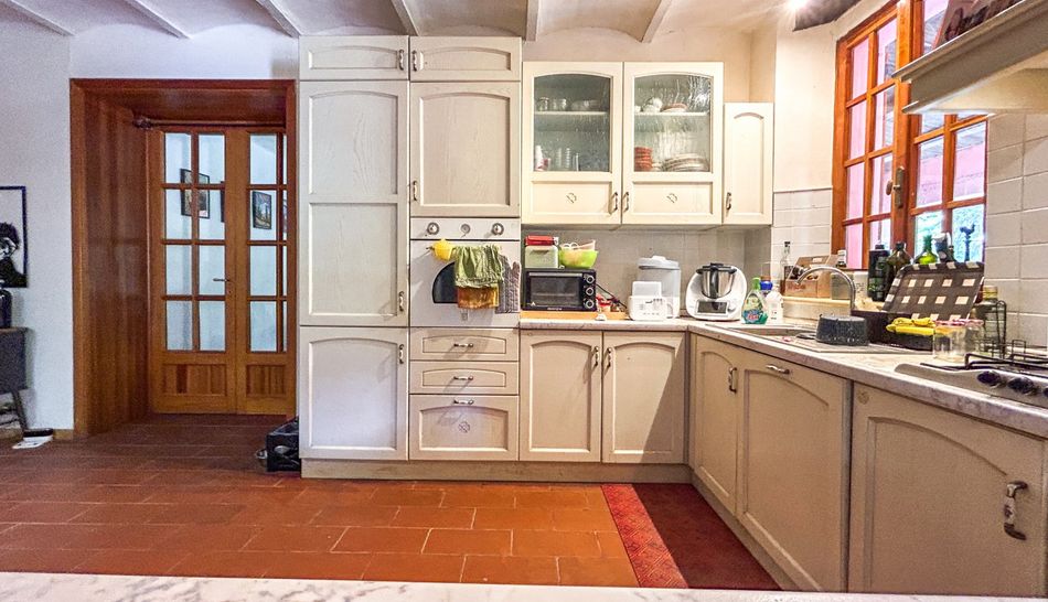 Al piano terra, la casa offre una cucina rustica con camino e pavimenti in cotto, una dispensa, un ampio soggiorno con angolo bar, una camera matrimoniale con bagno en-suite, una lavanderia, un ripostiglio e un secondo bagno da ristrutturare. Il primo piano comprende una sala relax, due camere matrimoniali molto spaziose e un secondo bagno con vasca.