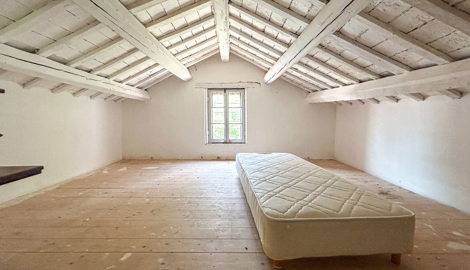 La proprietà è completata da annessi: uno è già stato parzialmente ristrutturato ed è pronto per essere adibito a studio (con fondamenta, utenze e soppalco già esistenti, oltre a una porta storica di fine XIX secolo), con un investimento stimato di circa 20.000-25.000 euro per il completamento. L'altro, un ex essiccatoio per il tabacco, attualmente adibito a garage/legnaia, necessita di ristrutturazione.
