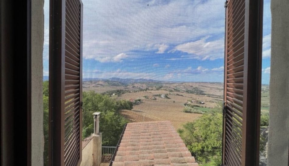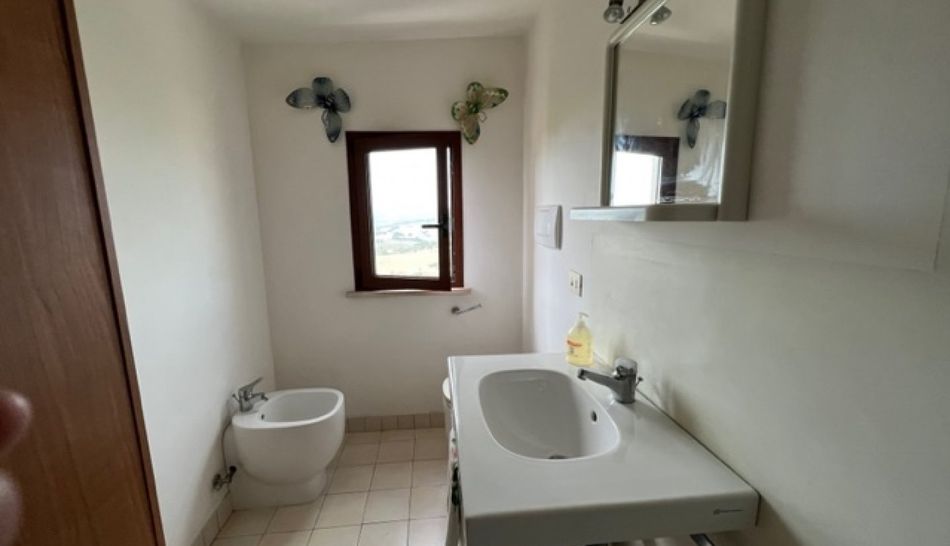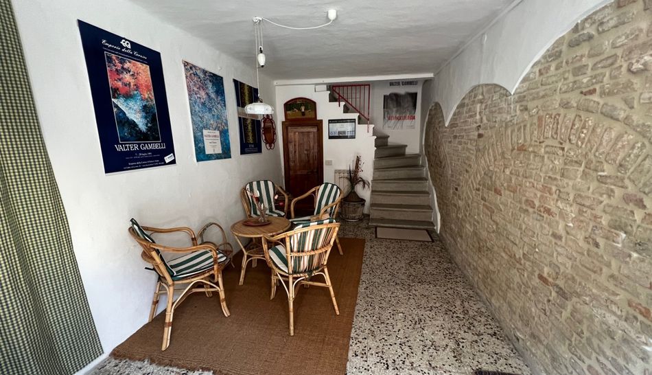 Casa di fila nel centro di Orciano, ristrutturata e disposta su 3 livelli. La casa si trova nella via principale del paese ed ha vista sul fronte della chiesa di Santa Maria (presenza di affreschi di Raffaello) e sulle colline alle spalle. Al piano terra: ingresso e una prima zona giorno con presenza di antiche volte restaurate e una cantina (in parte da ristrutturare). Una scala interna conduce alla cucina e sala da pranzo e un bagno, c'è anche un ampio balcone. Due camere da letto al secondo piano.