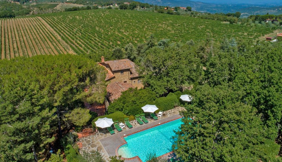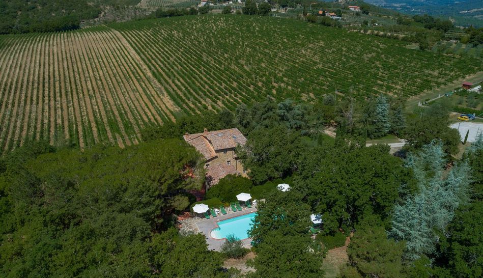 Posto in posizione riservata e allo stesso tempo vicino a tutti i servizi, questo podere di lusso risalente al 1400 ha una superficie complessiva di circa 615 mq e comprende la villa principale, una dépendance, una piscina e oltre 12 ettari di vigneti con cantina.