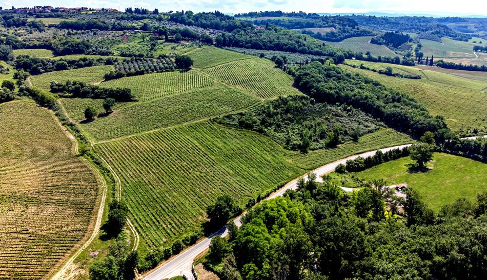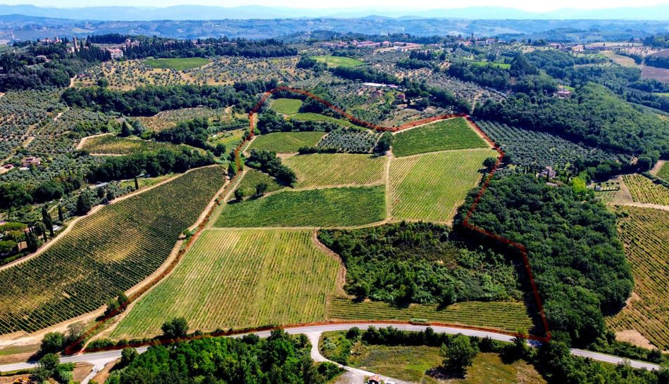 In posizione favorevole, soprattutto per la produzione di vino Chianti DOCG, fra Firenze e San Gimignano, questa proprietà ha condizioni ideali e ottimali per la realizzazione di una cantina e per la produzione di vini di alta qualità, commerciabili in tutto il mondo.