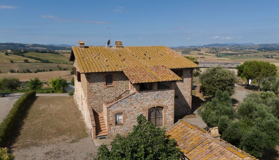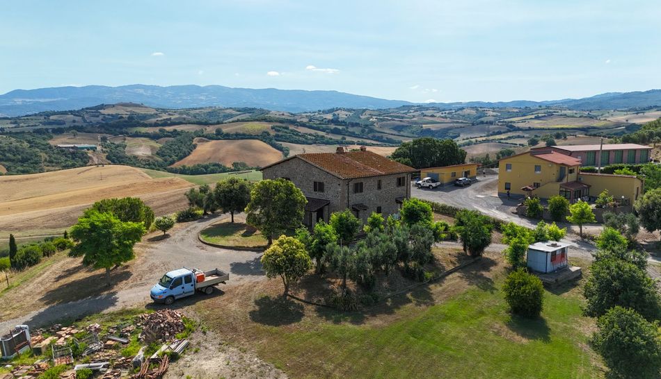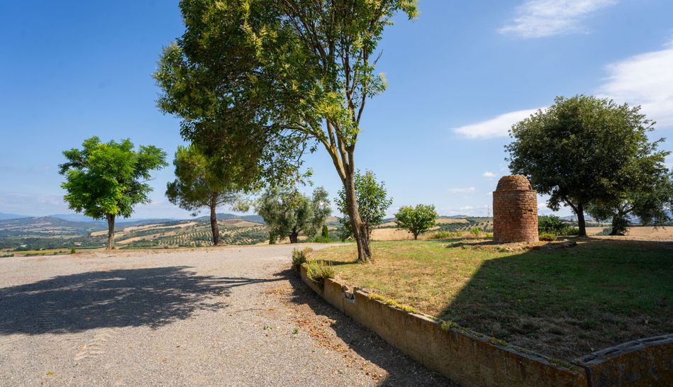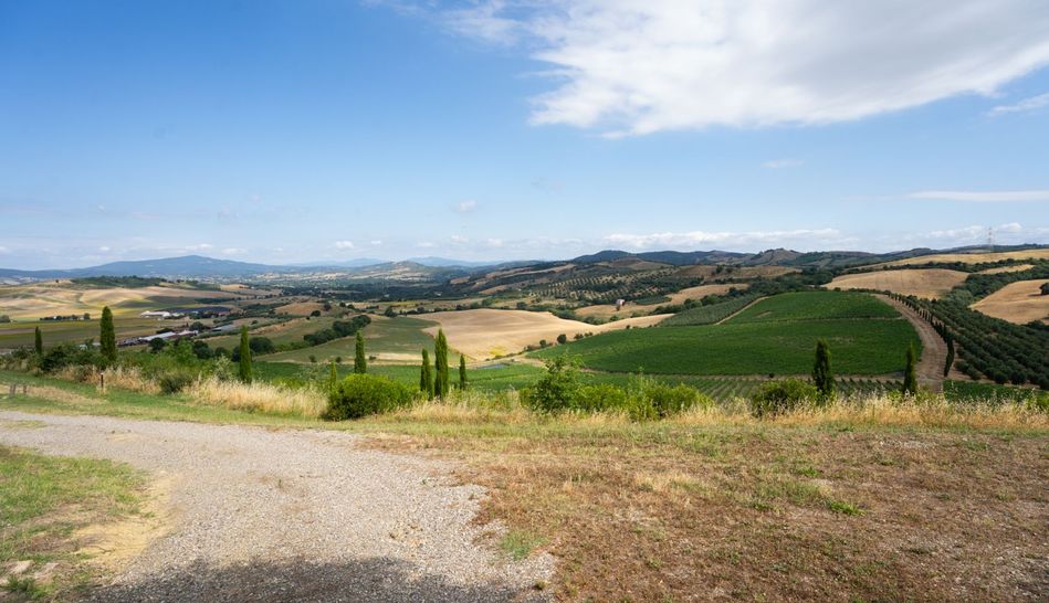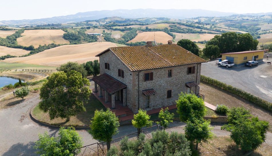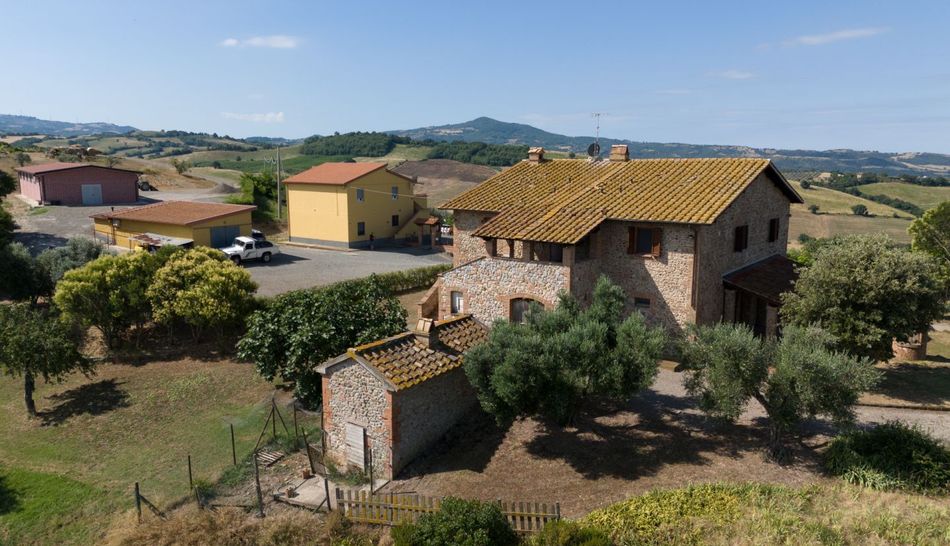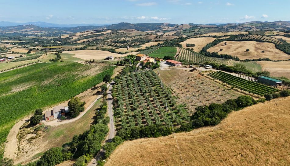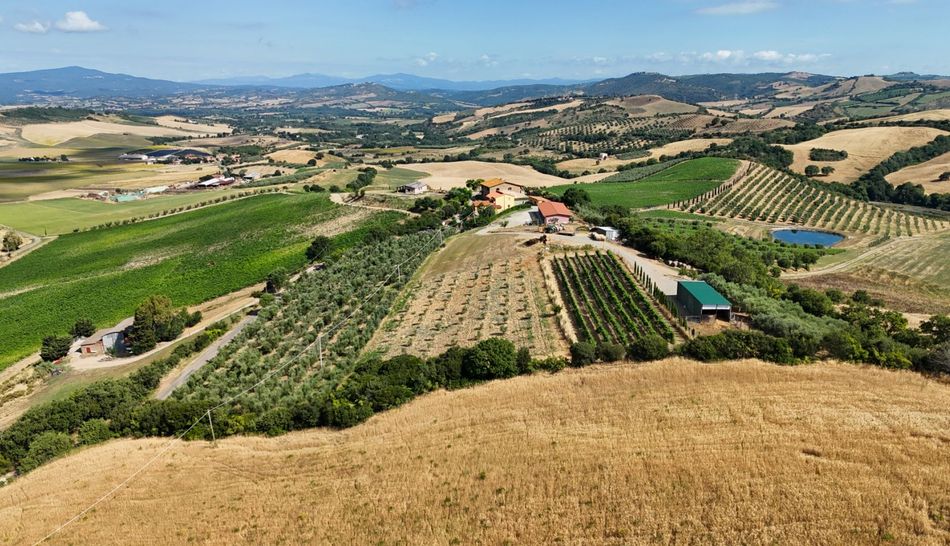Nel verde delle colline della provincia di Grosseto, nel comune di Campagnatico, questa azienda agricola toscana di 41 ettari con produzione vitivinicola è in vendita sulla cima di un colle immerso nella natura maremmana.