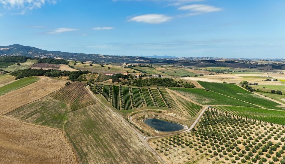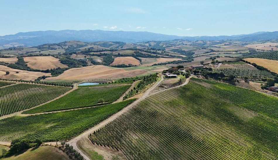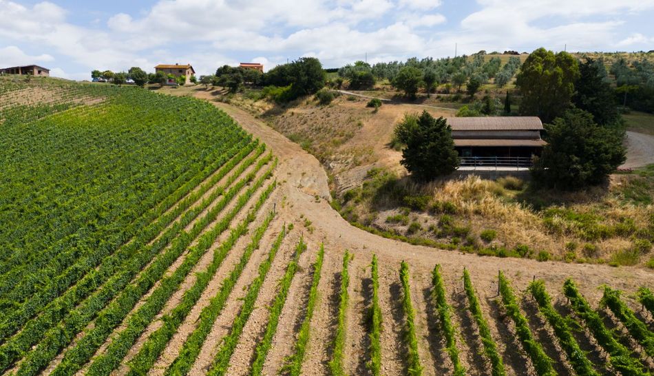 L'ampio terreno di 41 ettari è suddiviso in 17 ettari di vigneto in produzione (di cui 2,8 ettari di Morellino di Scansano D.O.C.G con impianto di irrigazione), 2 ettari bosco, circa 3 ettari di uliveto con 1000 ulivi in produzione, 7 ettari di seminativo e 1 ettaro di piantagione di noci.