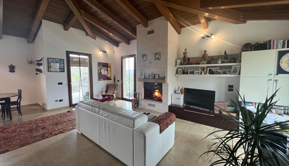 Ristrutturata nel 2014, la villa presenta una struttura in legno antisismica e ottime prestazioni energetiche. Gli interni sono luminosi e accoglienti, con un ampio soggiorno dotato di camino e grande finestra panoramica. La cucina abitabile è perfetta per preparare deliziosi pasti da gustare in famiglia. Con 4 camere da letto, di cui una con bagno privato, e un secondo bagno disponibile, c'è spazio per tutti.