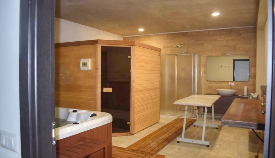 Il giardino di 2.460 mq, arricchito da ulivi e alberi da frutto, offre un'oasi di pace, mentre il terrazzo collegato alla piscina a sfioro invita a momenti di relax. Inoltre, la villa è dotata di una SPA al piano interrato con sauna, idromassaggio e doccia con cromoterapia, per un'esperienza di benessere senza pari. Non perdere l'opportunità di vivere in questo angolo di paradiso!