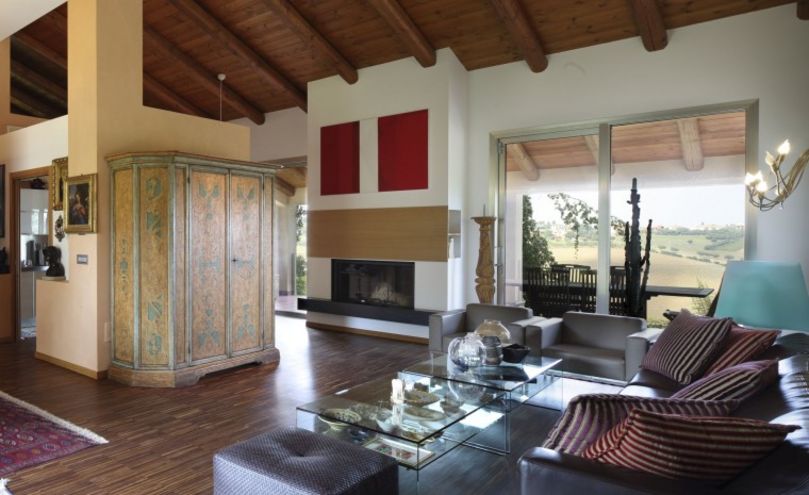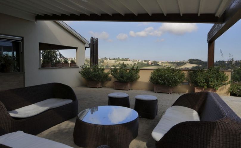 Circondata da 5.000 mq di giardino piantumato e completamente recintato, villa moderna situata a pochi Km da San Costanzo e dal mare, con vista panoramica sui borghi limitrofi. La proprieta’ e’ munita di un parcheggio con due posti auto parzialmente coperti di 90 mq con pavimentazione circostante di oltre 400 mq. Il fabbricato e’ cosi suddiviso: Piano terra, ingresso principale con guardaroba, ampio salone con camino, cucina, studio, bagno con doccia, camera padronale e terrazzo panoramico di 30 mq. Tramite una scala si accede al piano rialzato ove e’ presente una camera da letto, un bagno e un ripostiglio.