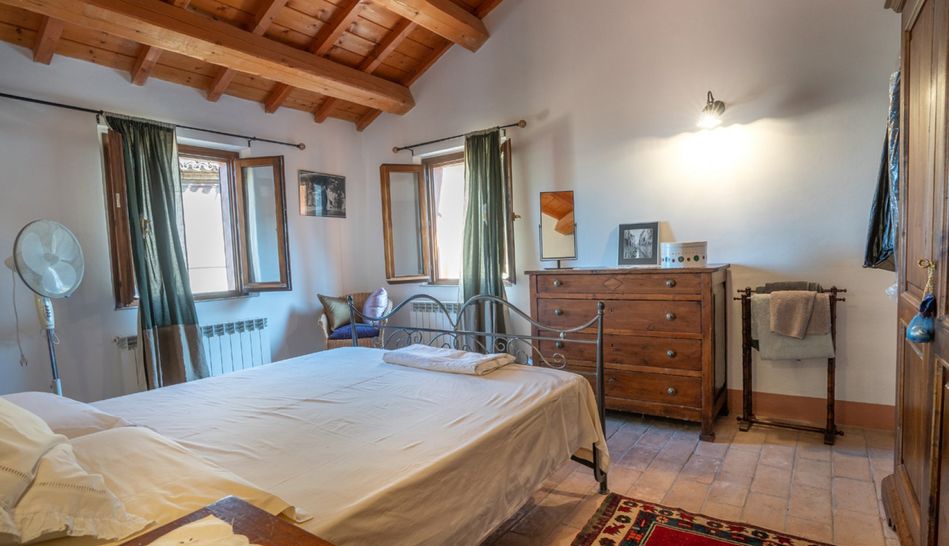 Al piano superiore ci sono 3 camere da letto e un ampio bagno con doccia e vasca separate, lavabo e wc più bidet. Con semplici modifiche è possibile aggiungere un secondo bagno alla casa, se lo si desidera. I soffitti sono inclinati e ogni camera beneficia di persiane che bloccano il sole estivo ei pavimenti sono in cotto originale.