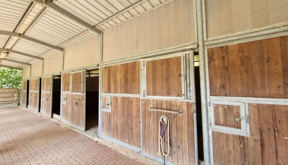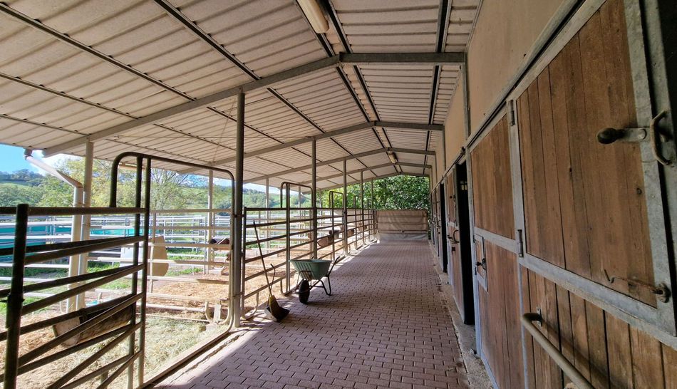 La scuderia di 270 mq totali si compone da sette box coperti e sette scoperti, oltre al locale selleria e il locale farmacia.