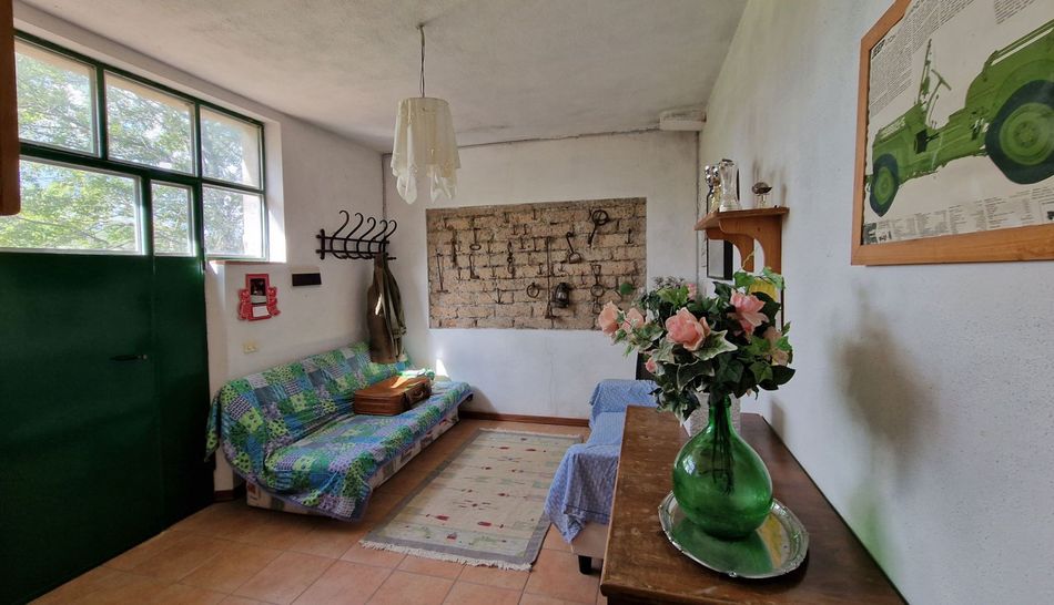 Al piano terreno si trova un soggiorno, cucina abitabile con altro grande portico, disimpegno notte, camera, ripostiglio, bagno, centrale termica e cantina.