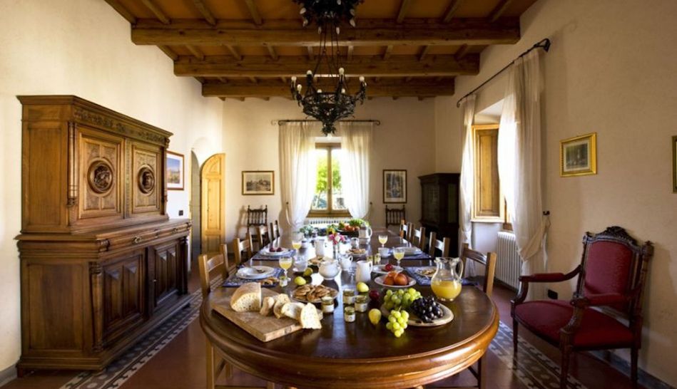 Careful renovation has enabled the property to retain all the original features of the period, such as the stone walls, the terracotta and parquet floors, the vaulted ceilings and wooden beams, the stone fireplaces, the pietra serena elements, the paved terraces, the stone well and the medieval tower.