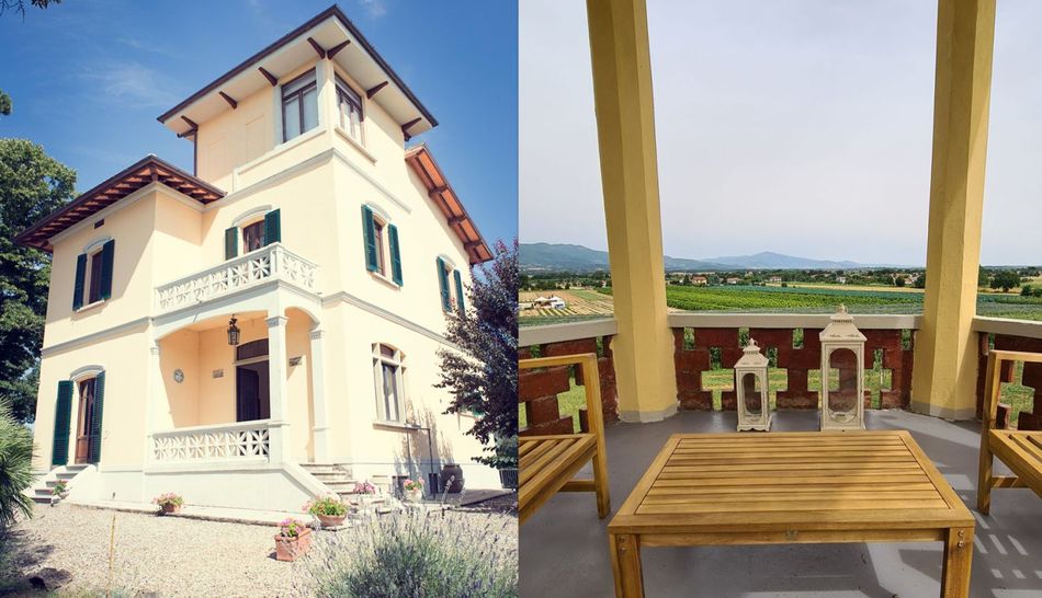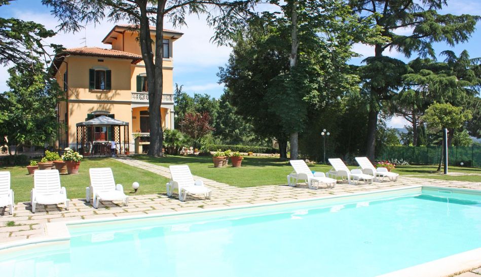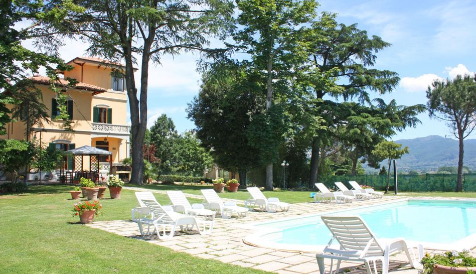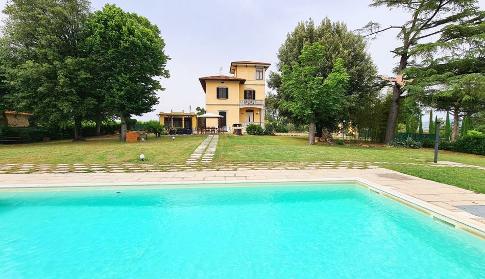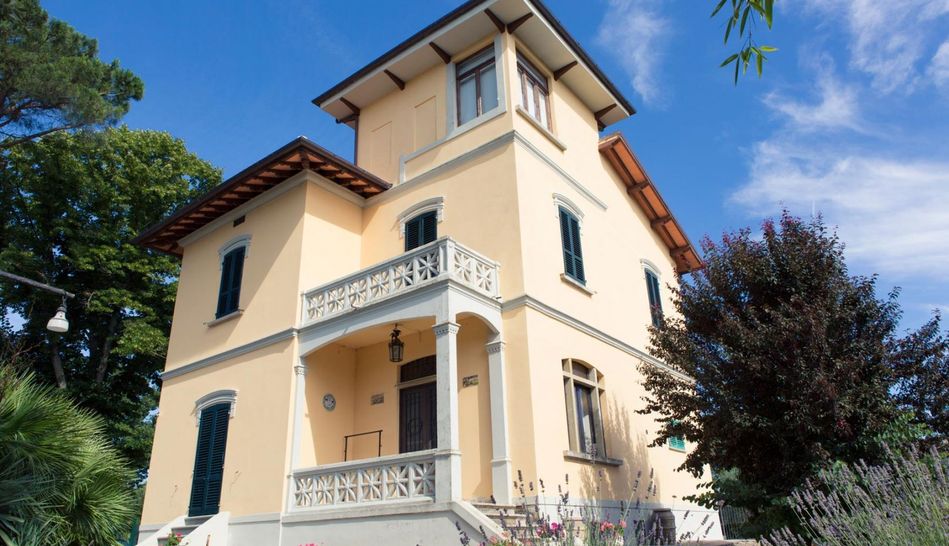 Exclusive Art Nouveau villa with swimming pool immersed in the green Tuscan countryside.
