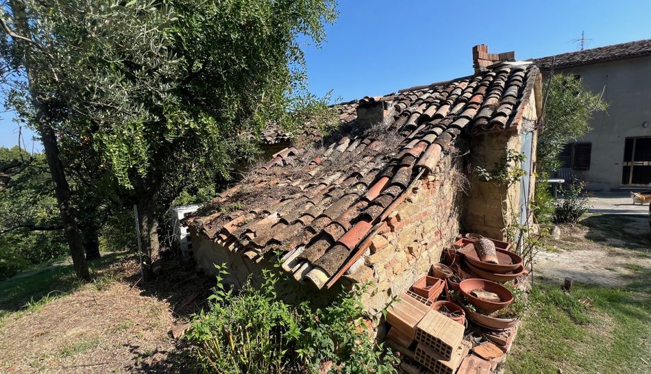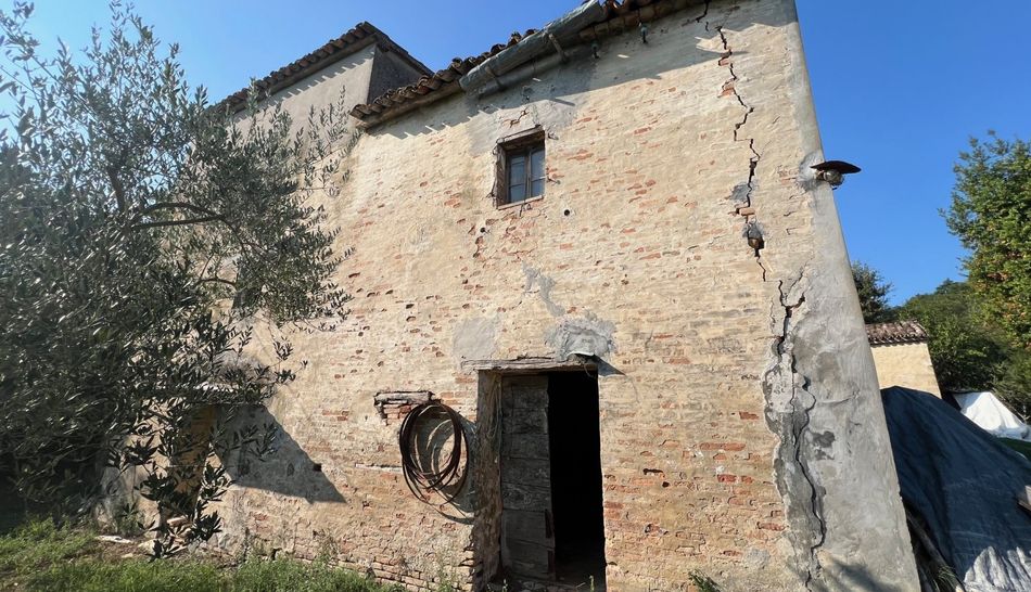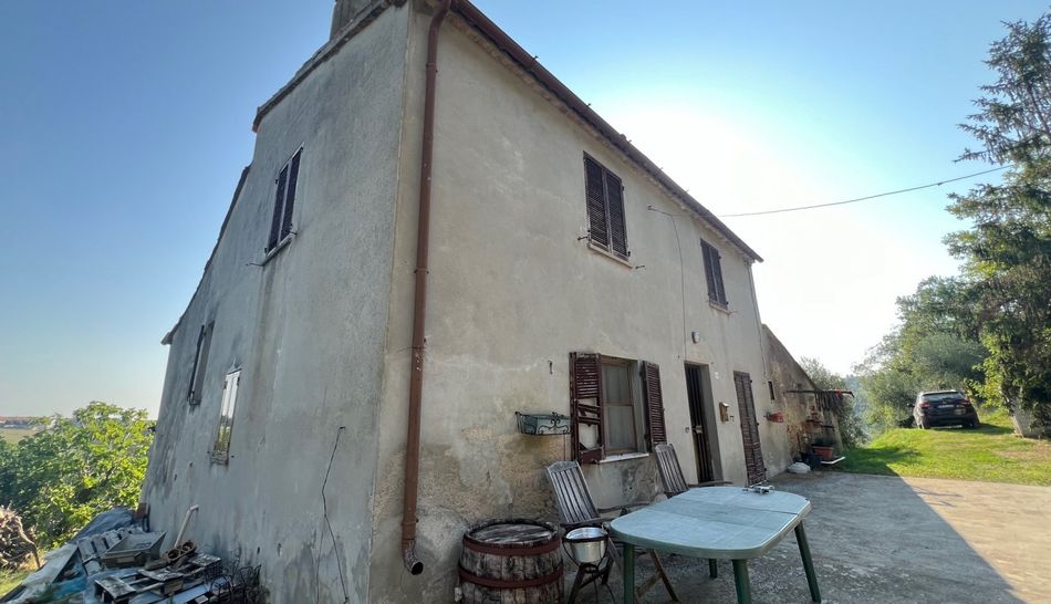 Op een steenworp afstand van het centrum van de oude vestingstad Mombaroccio, met toegang vanaf een onverharde weg, ligt dit landhuis op een prachtige panoramische locatie met uitzicht op de stad, 18 kilometer van de stad Fano en het strand en 17 kilometer van de stad Pesaro met zijn zandstranden. Alle benodigde voorzieningen zijn op een paar minuten afstand te vinden, inclusief bars en restaurants. Het huis verkeert in een redelijke structurele staat, maar moet worden gerenoveerd en bevindt zich in het centrum van het landgoed dat zich uitstrekt over een totale oppervlakte van meer dan 5 hectare met ongeveer 120 olijfbomen, waarvan de helft eeuwenoud is; naast gemeentelijk water is er ook een waterbron. Het huis is verdeeld over drie niveaus: op de begane grond keuken, badkamer, 5 opslagruimtes, een woonkamer, trap die aansluit op de eerste verdieping waar zich 4 kamers bevinden. er is ook een kelder